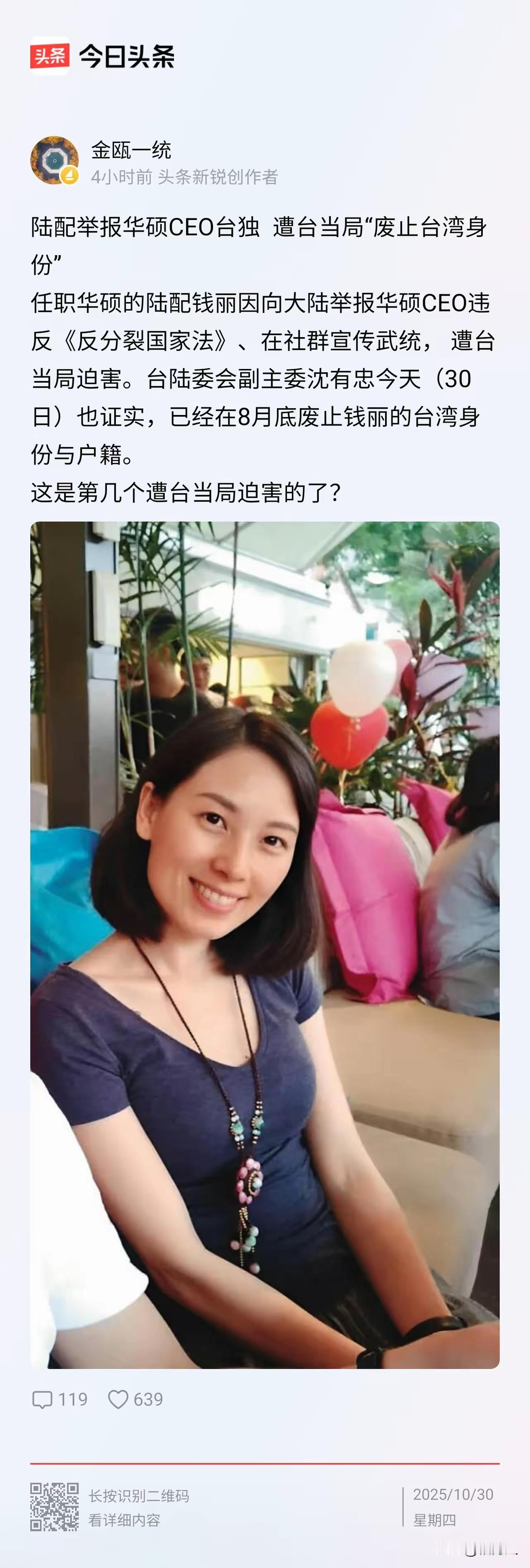 台湾华硕CEO支持台独?向社群发放反华宣传?据报陆配钱丽因向大陆举报华硕CEO台独,遭台当局撤销户籍,梁文杰今天(30日)声称,“已废止她的定居许可、撤销她的户籍。” 有网友说:爱国的路籍婚姻必须得到国家的保护照顾!作为特殊贡献者,统一之时,应该得到应有安置!出卖民族利益,必须得到严惩! 如果消息属实,要能做到这样,真是不易,必须支持。对这个华硕,也必须真心对待,相信会给你各种想要的惩罚! 强烈要求政府对台湾实行穷台政策!取消一切优惠政策!限制台湾的经济发展! 对台资企业要严加审核,台独势力壮大跟他们的支持脱不了干系,能替代的坚决替代。 华硕现在在大陆都卖翻了。既然这样,大陆有关部门应该禁止它们在大陆销售。 大家怎么看呢?