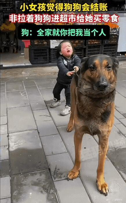 重庆这事儿可太逗了!小女孩哭着拽着自家狗狗往超市里冲,非得让狗狗给她买零食,大概在她眼里,狗狗跟家里人没两样,肯定也会掏钱包结账。可那狗子呢,站在原地一动不动,俩耳朵耷拉着,眼神里全是“我是谁我在哪”的迷茫,估计心里直犯嘀咕:“小祖宗啊,我浑身上下就一身毛,兜比脸都干净,哪有钱给你买零食?全家就你把我当能结账的主儿!” 这场景一传到网上,网友们的评论直接炸了锅。有人说:“狗子:我当时紧张得狗毛都竖起来了,第一次体会到‘没钱寸步难行’的尴尬。”还有人补刀:“小女孩怕不是觉得狗狗的狗粮钱都是自己挣的?这逻辑没毛病,就是狗狗有点扛不住。”更绝的是有条评论:“现在的狗压力太大了,不仅要陪玩陪睡,还得承担家庭经济支出?” 说实话,我看这视频的时候,笑着笑着就觉得心里暖暖的。你看这小女孩,她哪懂什么钱不钱的,在她的世界里,狗狗是每天陪她疯跑、分享零食的伙伴,是跟爸爸妈妈一样重要的家人。她觉得狗狗能做到一切,就像她相信月亮会跟着自己走、星星会眨眼睛一样,纯粹又真诚。这种把动物当成平等家人的天真,其实是最珍贵的善意——在孩子眼里,生命没有高低贵贱,陪伴就是最实在的联结。 往深了想,这事儿不也像面小镜子吗?我们长大后,总被现实里的“规则”框住:钱能解决很多事,身份决定了能做什么。可孩子不管这些,她只认“陪伴”和“爱”。狗狗不会结账,但它会在小女孩摔倒时跑过去舔她的手,会在她难过时静静趴在她脚边。这些不用花钱的温暖,其实比超市里的零食贵重多了。 所以啊,别光顾着笑狗子尴尬,不如学学这孩子——多看看身边那些不用“结账”也能拥有的美好:家人的拥抱、朋友的惦念,还有那些默默陪伴的小生命带来的治愈。毕竟,真正的幸福,从来都不用花钱买。 各位读者你们怎么看?欢迎在评论区讨论。