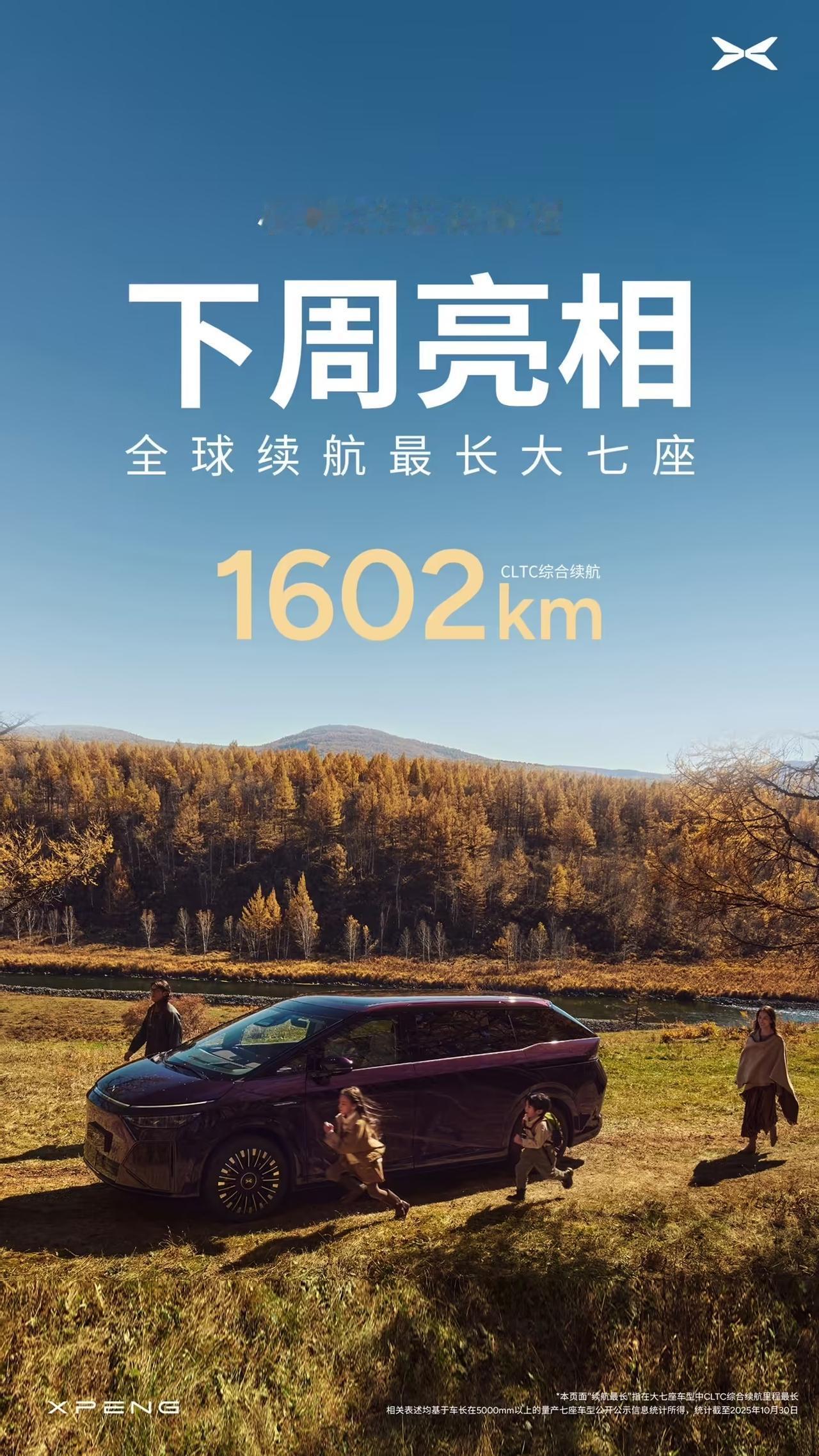 小鹏X9超级增程下周就亮相了![哆啦A梦吃惊] CLTC 1602km / 63.3度超快充磷酸铁锂电池 / 纯电续航452km / 支持800V+5C超充 车长5316mm / 轴距3160mm 新增“云间玫棕”配色 / “穹顶星轨氛围灯”打造“移动星空舱” 独立座椅+“零重力”模式 / 有望标配车载冷暖箱 你们期待这台小鹏吗?[吃瓜群众]