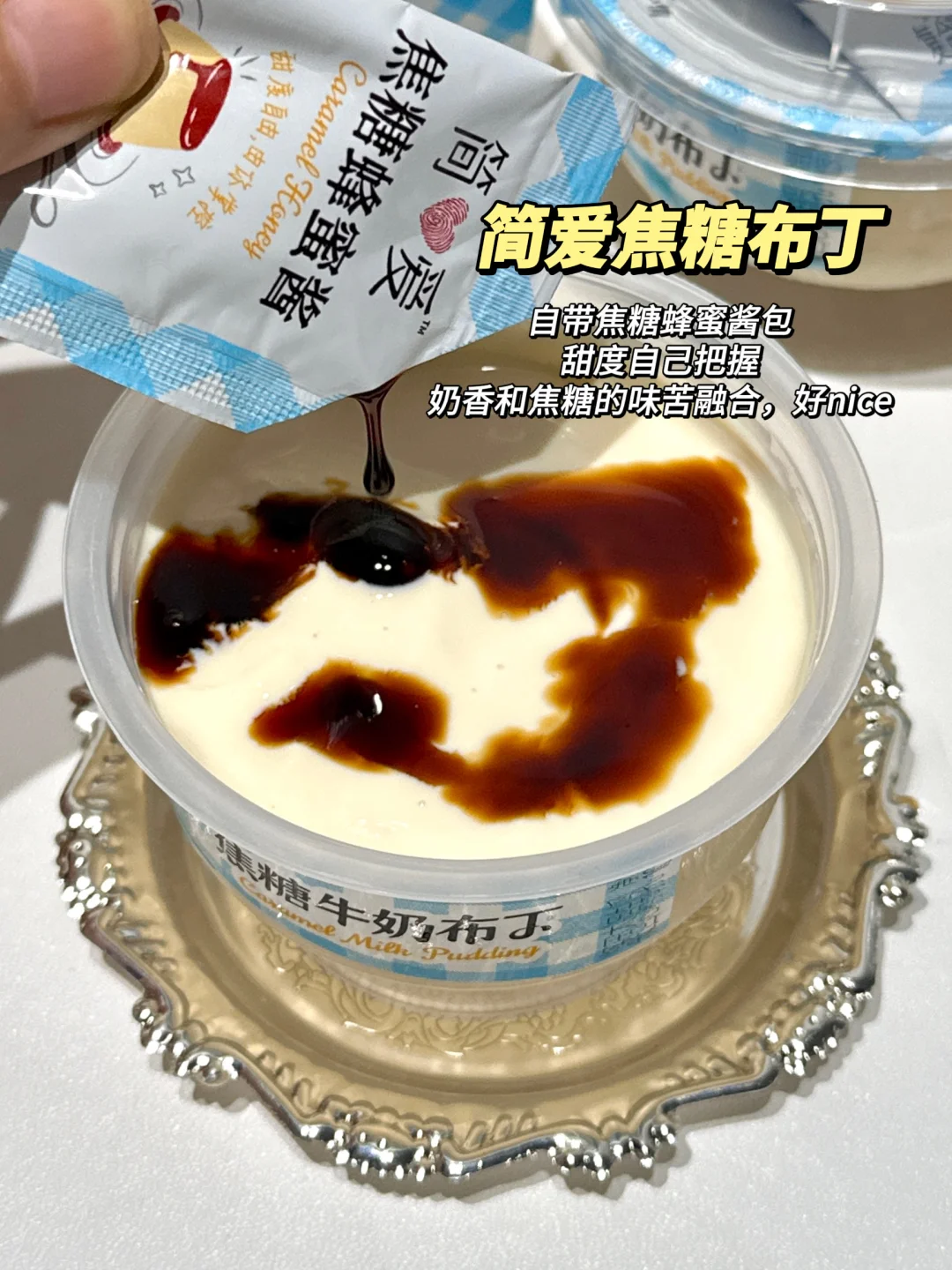 3️⃣倒入简爱焦糖布丁,淋上焦糖蜂蜜酱,用喷火枪炙烤