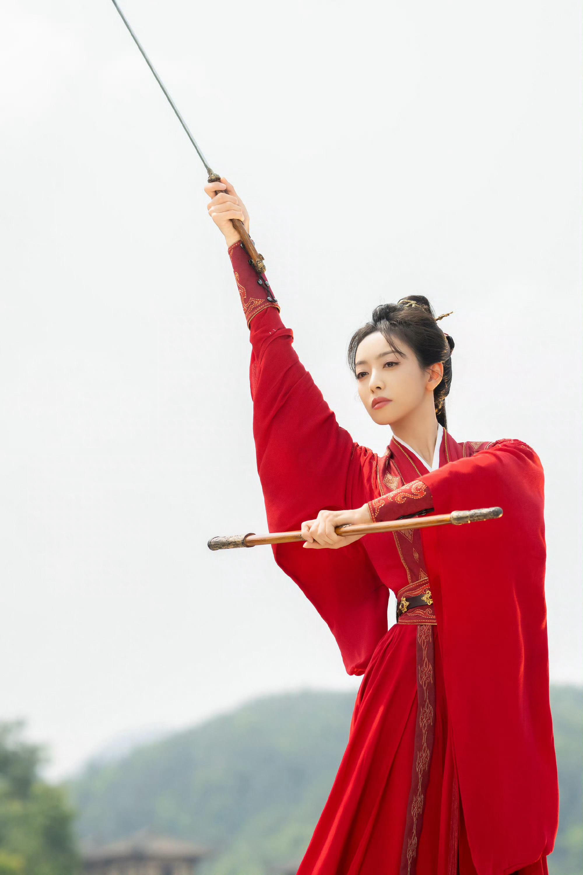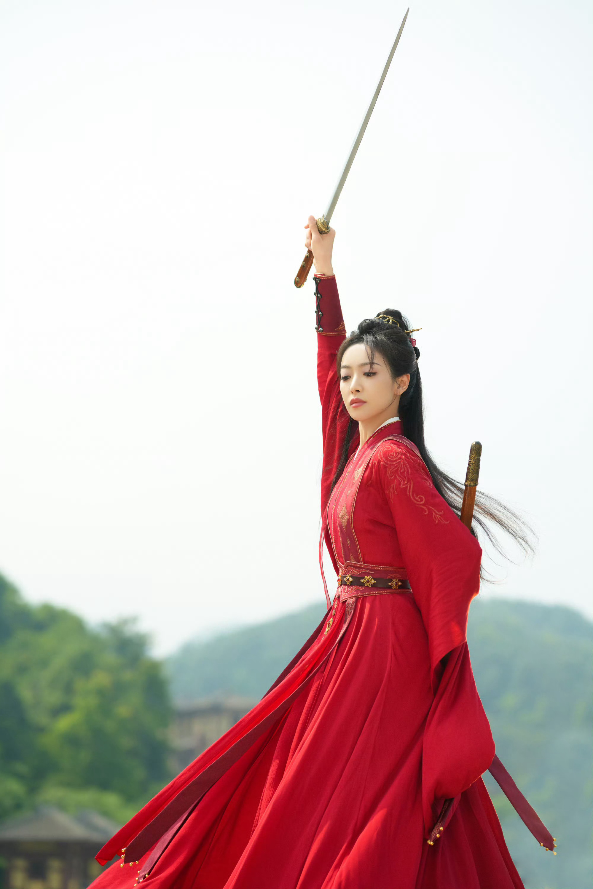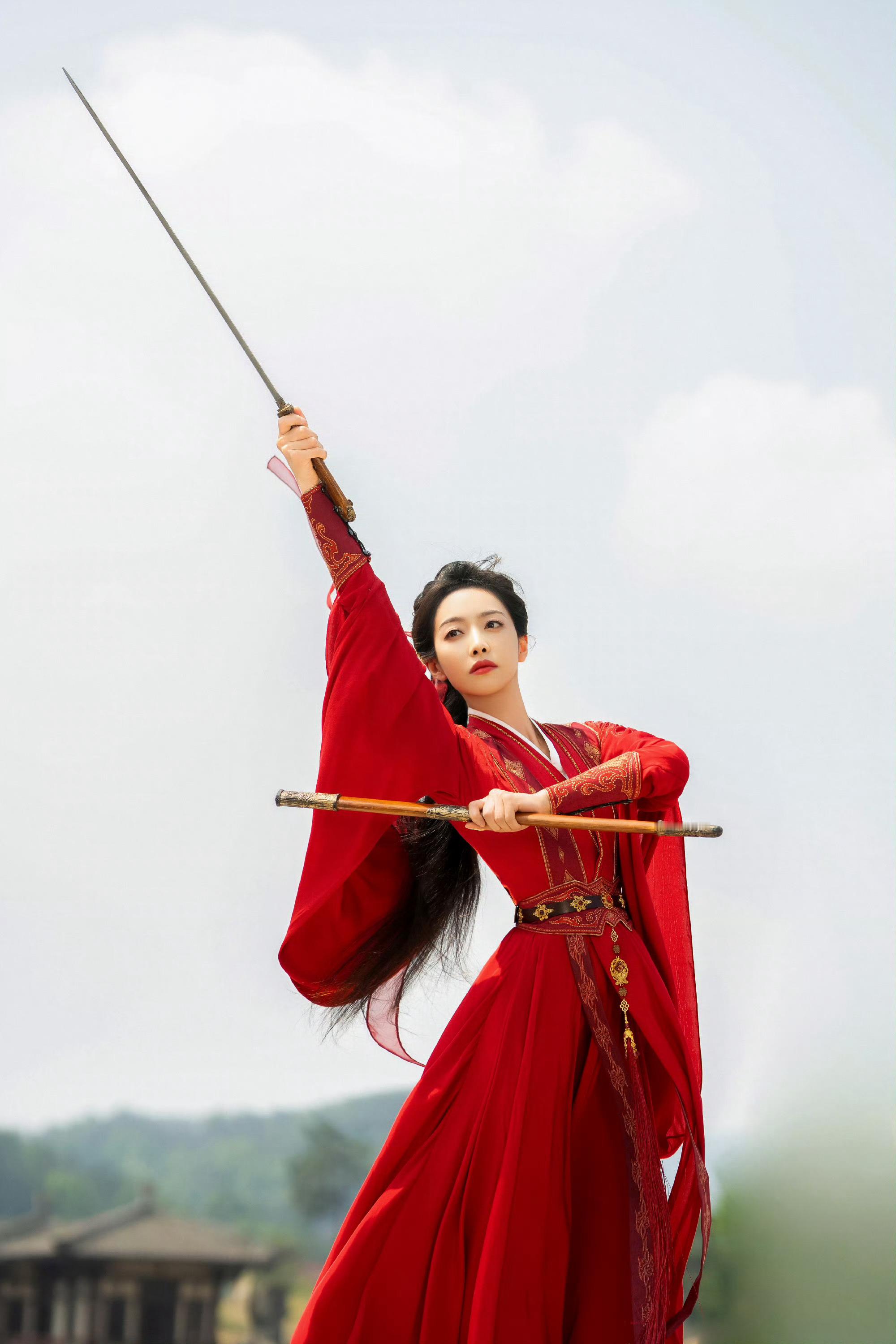 宋茜红衣舞剑直拍 一袭红衣舞剑直拍,动作行云流水,柔美中带着凛冽杀气,将楚瑜的将门风骨展现得淋漓尽致!柔美与力量完美融合。这段直拍我能循环一整天。宋茜山河枕