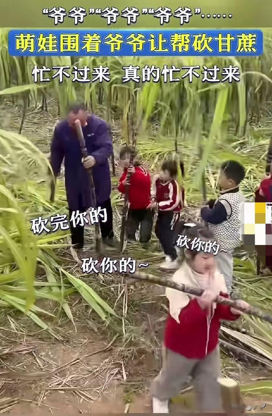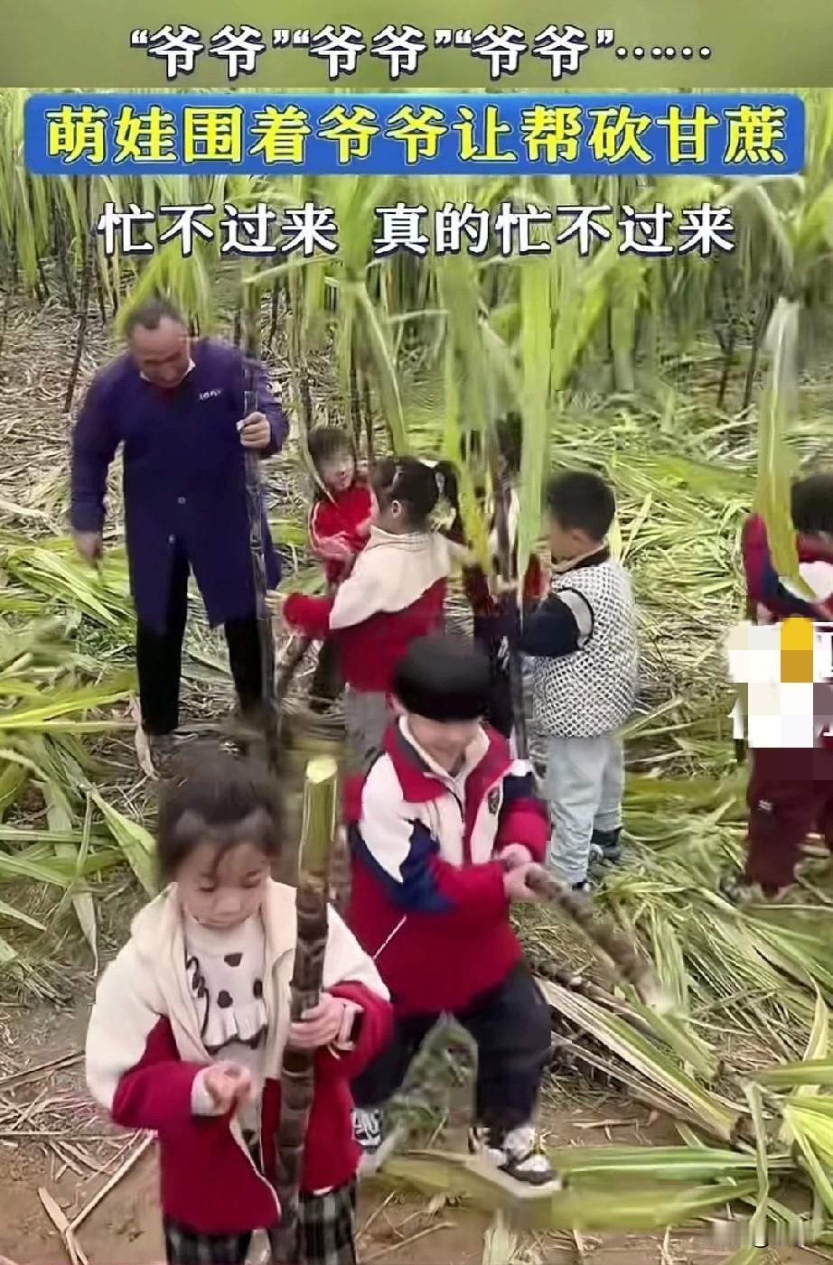 一家庭农场里面好热闹, 一堆萌娃围着一大爷转悠, 人人手拿着一支甘蔗, 排队等候爷爷给他们砍甘蔗, 爷爷被一群孩子喊的心花怒放, 手里砍甘蔗也不觉得累了, 直言砍完你的砍你的, 给孩子们安排的妥妥当当的, 一副甘蔗主理人的架势, 孩子们开心坏了, 甘蔗园秒变儿童乐园, 这样的儿童农场其实挺不错的, 也玩可也锻炼了孩子, 比在家里面吃零食玩手机好多了, 大家觉得带孩子到甘蔗园锻炼好玩吗? 儿童安全 老男孩的农场 亲子拔甘蔗 亲子甘蔗 爷爷家农场