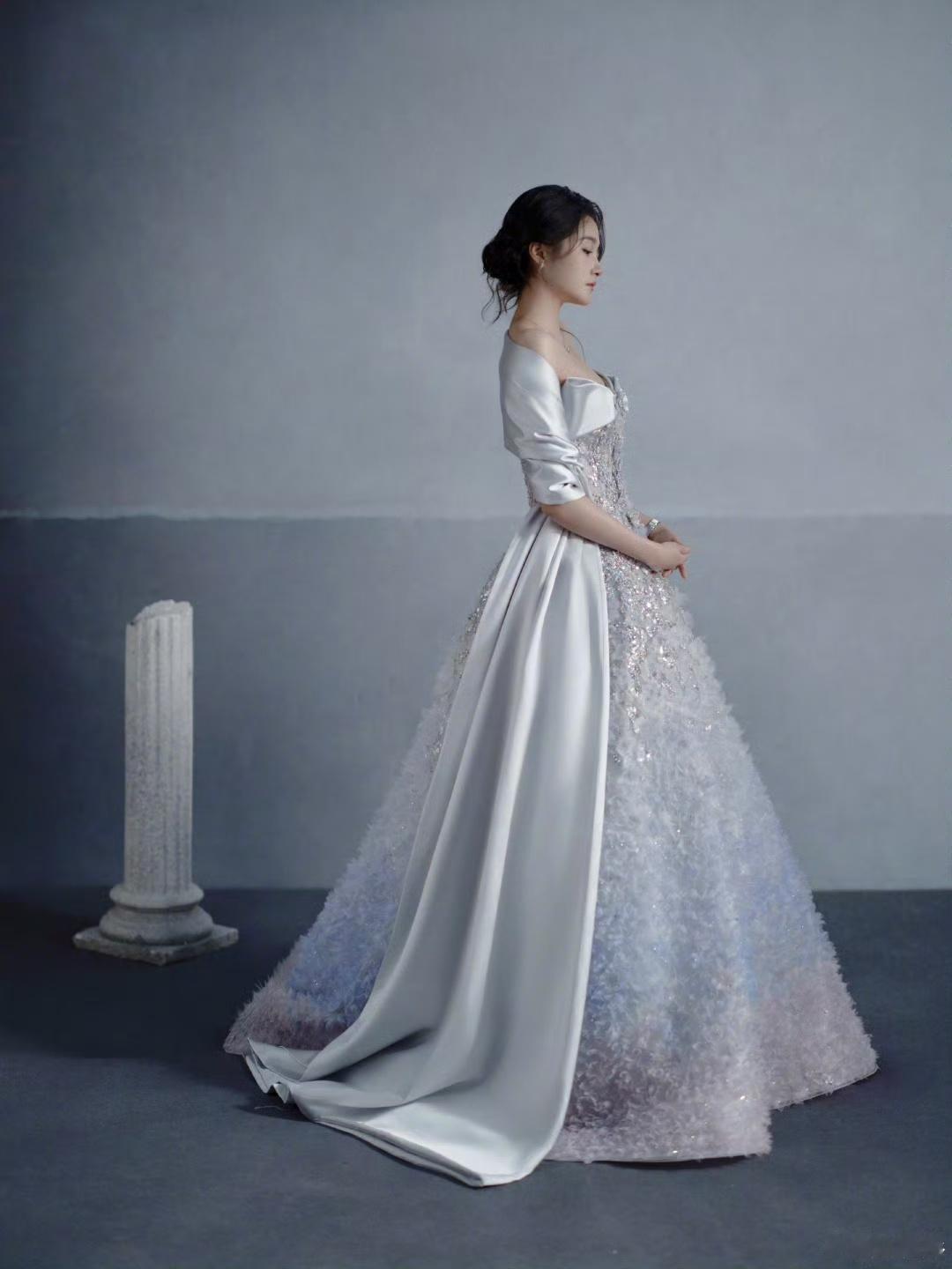 关晓彤[超话] 关晓彤银色缎面碎钻裙 关晓彤王牌秀场的造型也太美了!关晓彤银灰缎面披风