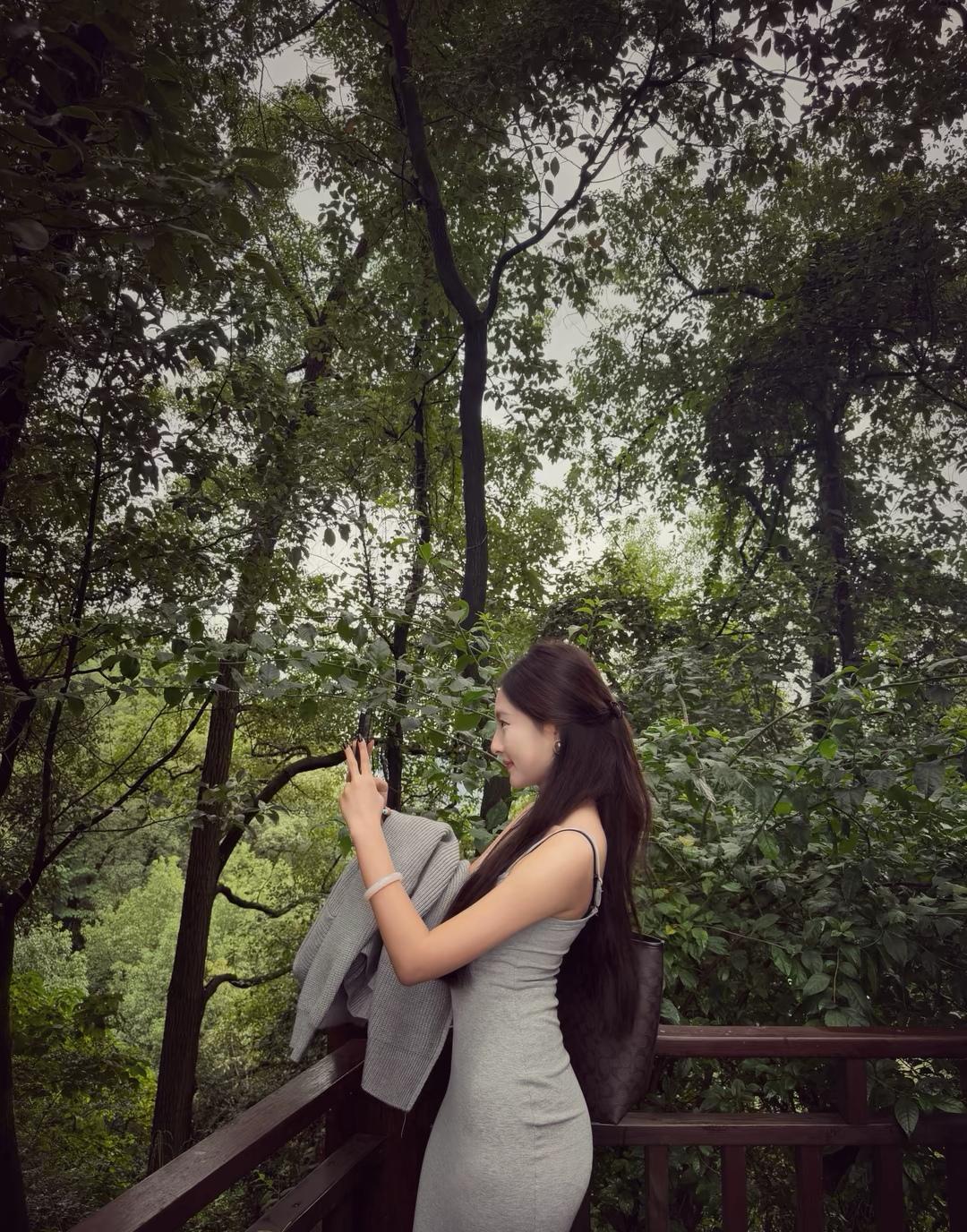 优雅黑裙,绿植映衬,复古风韵,韵味十足。