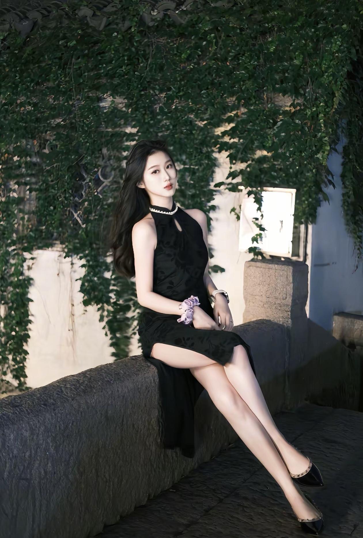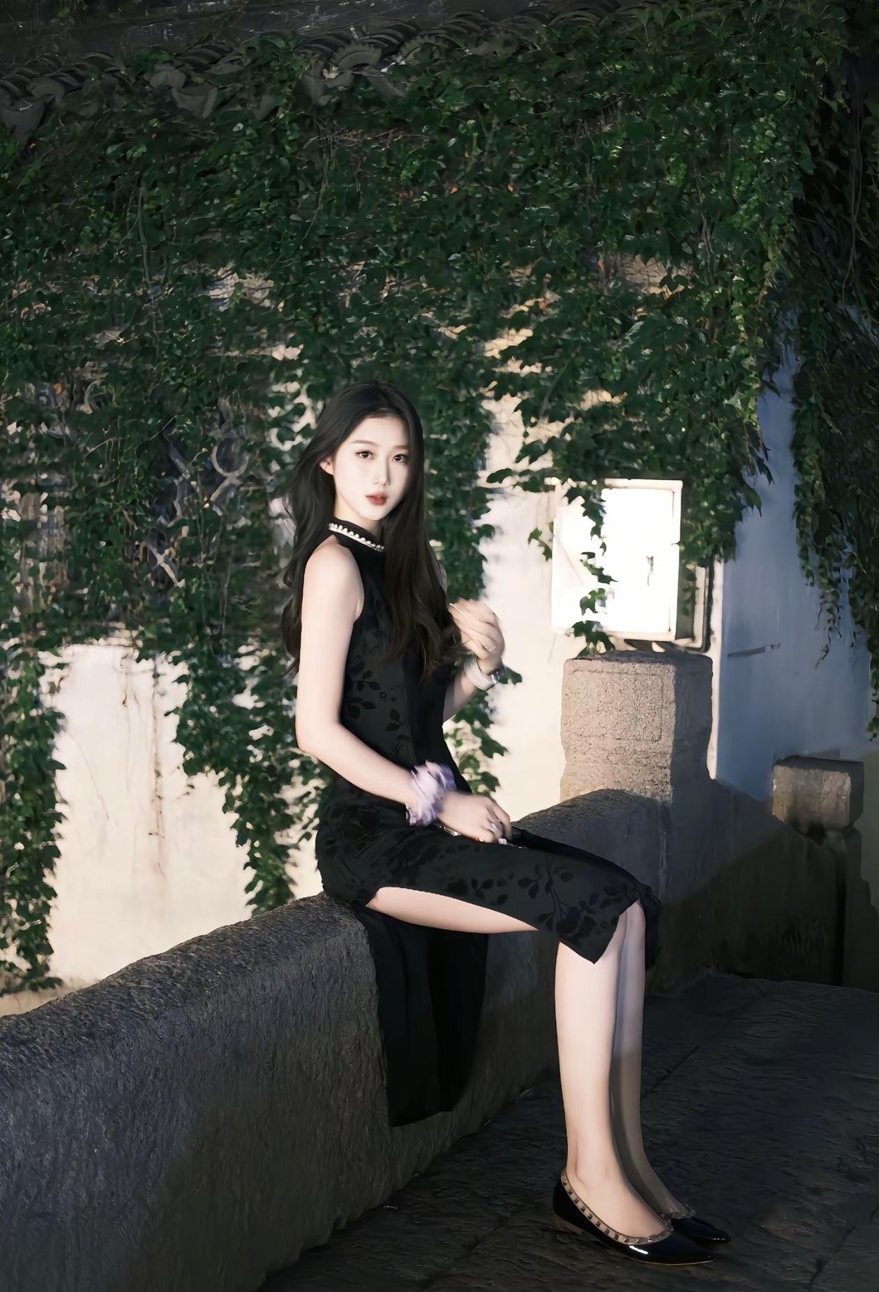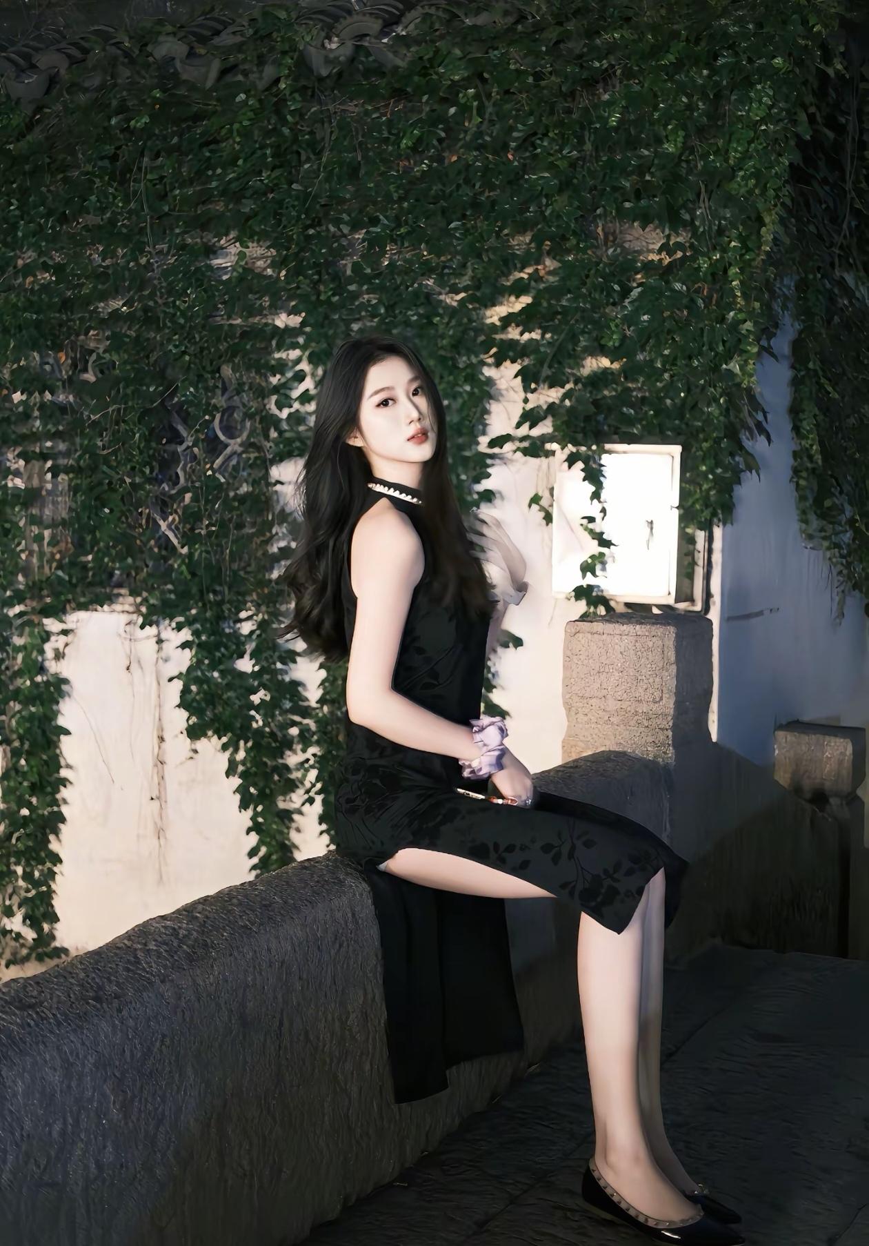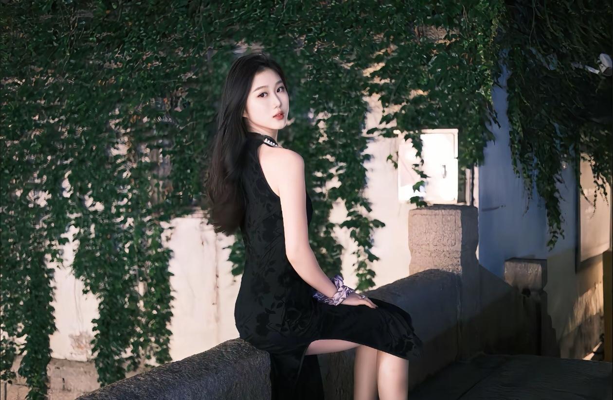 优雅黑裙,绿植映衬,复古风韵,韵味十足。