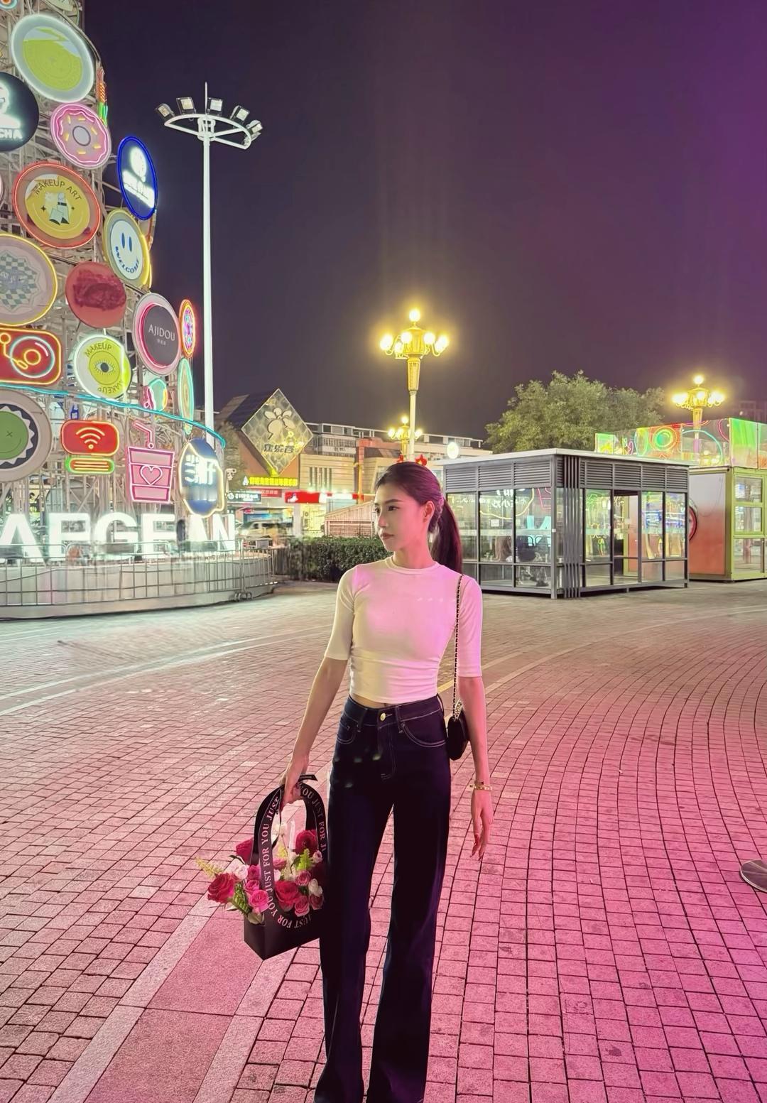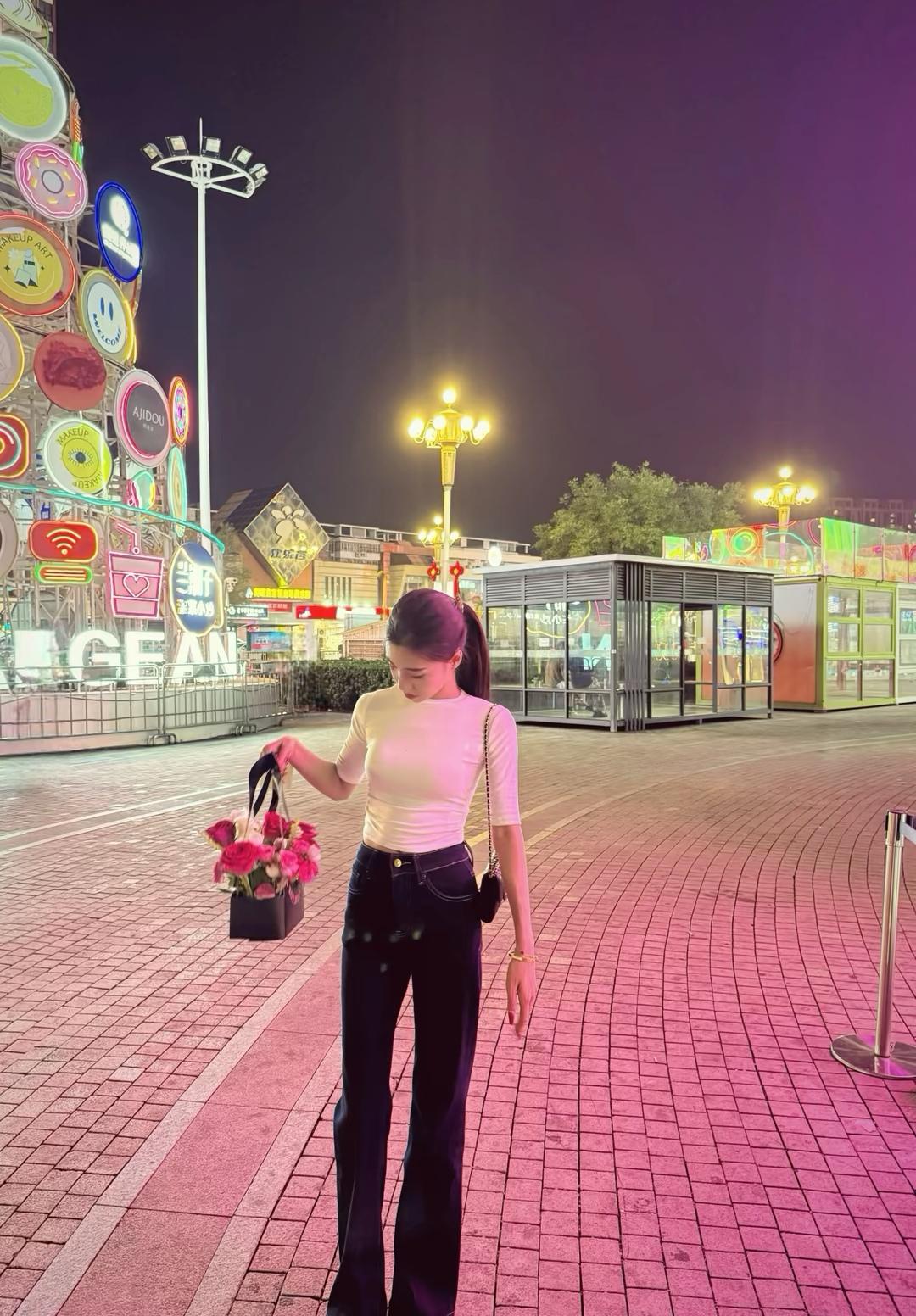 夜游繁华街头,霓虹灯下,时尚少女与绚丽霓虹灯交相辉映。