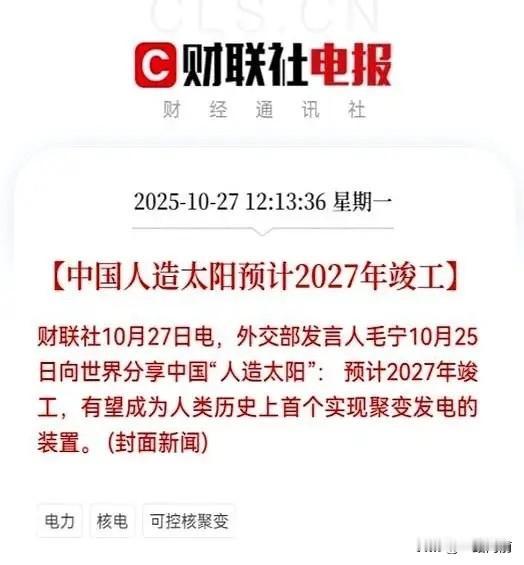 我跟你们说个事儿,你坐稳了。 咱们的“人造太阳”居然要提前3年完工,2027年就能在安徽合肥点亮,这可是人类历史上首个能实现聚变发电的装置啊!以前说2030年才成,现在直接把时间表往前拽了整整3年,这进度简直像开了火箭! 别以为这是画大饼,人家早就在“真刀真枪”干了。这个叫BEST的紧凑型聚变能实验装置,5月份就启动总装了,10月初连核心部件杜瓦底座都精准装好了,等于主体工程已经步入正轨。而且这可不是空架子,它用的是高性能超导磁体,烧的是氘氚聚变燃料,能在1.3亿℃的高温下稳定运行,这温度可是太阳核心的5倍还多,能提前完工全靠技术硬实力撑着。 最让人激动的是,这玩意儿跟咱们普通人的日子息息相关!核聚变发电可是终极清洁能源,燃料从海水里就能提炼,1升海水的氘能顶300升汽油的能量,根本不愁用完。一旦商业化,电费可能直接跌到现在的十分之一,夏天开空调、新能源车充电都不用心疼钱了。更关键的是它零碳排放,以后雾霾能少一大半,再也不用天天盯着空气质量指数了。 要知道,全球都在抢“人造太阳”的先机,以前总担心被技术卡脖子,现在咱们直接领跑——合肥早就集齐了EAST、CRAFT这些“神器”,组成了中国“可控核聚变天团”,从部件研发到发电演示全链条打通。难怪外交部都主动向世界分享这消息,这底气简直藏都藏不住! 不过也得说句实在的,2027年是实现“发电演示”,真正走进千家万户可能还要等个二三十年。但想想几十年后,能源几乎零成本,工厂不用限电,冬天暖气随便开,这日子也太值得期待了!