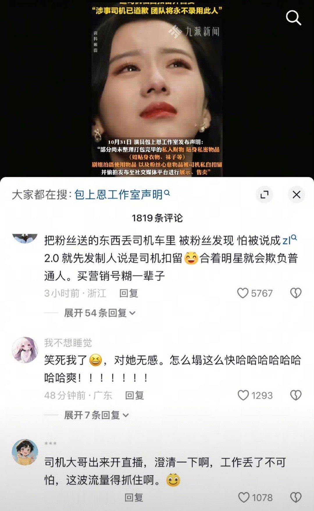 下沉市场已经开始不愿意了包上恩和司机那件事网友觉得包上恩那边再欺负打工人故意把衣