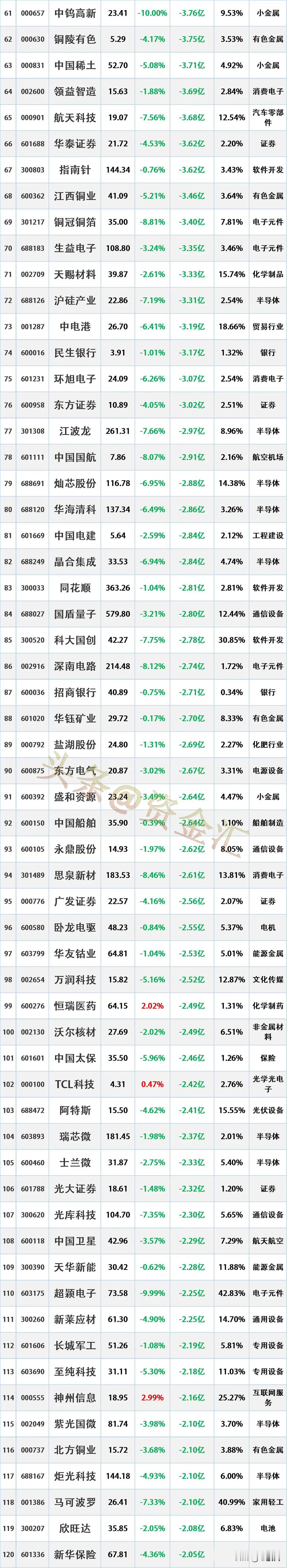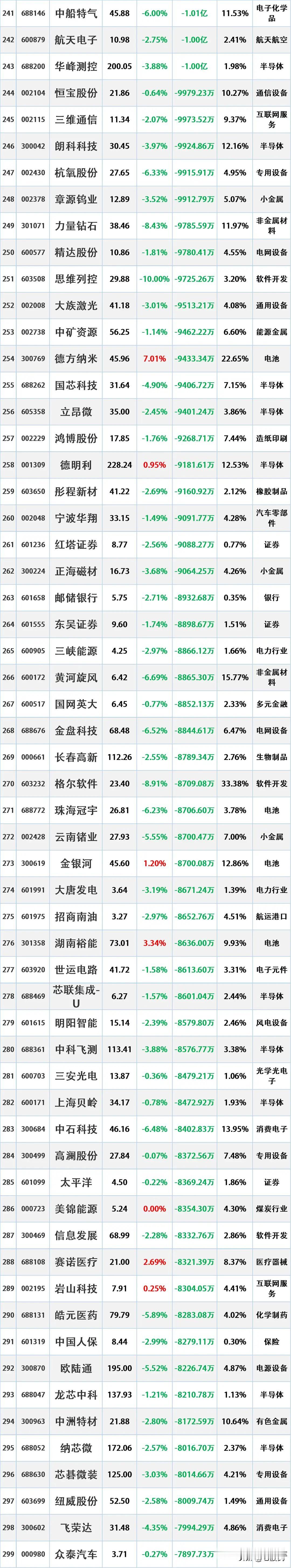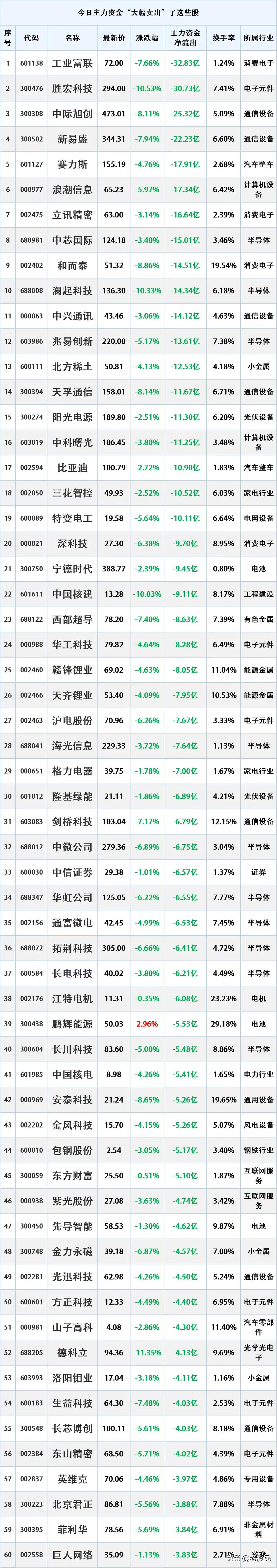 尾盘资金出逃,10月31日主力资金大幅流出的股票名单。 资金流出是指在一定时期内(如一天、一周等),主动卖出某只股票的资金量大于主动买入该股票的资金量。主动卖出是指投资者以买方的报价直接成交,显示出投资者对该股票的消极持有或抛售意愿。