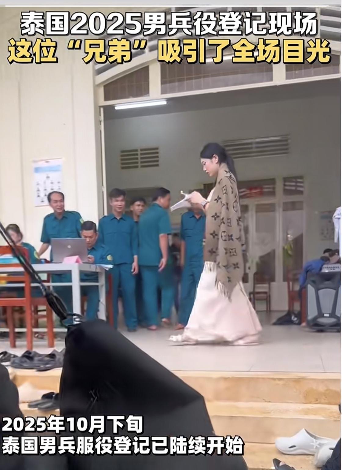 真是让人看傻了眼, 泰国2025男兵役登记现场, 来了一位“兄弟”, 比女人还女人, 瞬间吸引了全场目光。 真不知道, 这种是编排到男队, 还是编排到女队服兵役好。 在泰国进行变性手术, 除非是医学证明, 身体已符合女性特征, 才能免服兵役。 大家看看,这位兄弟, 需不需要服兵役?