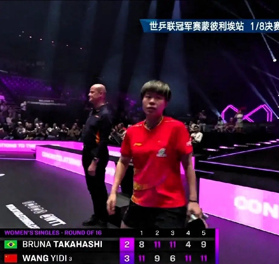 高桥.布鲁纳哭了!前三局2:1,决胜局9:7领先,被王艺迪连得四分11:9实现逆