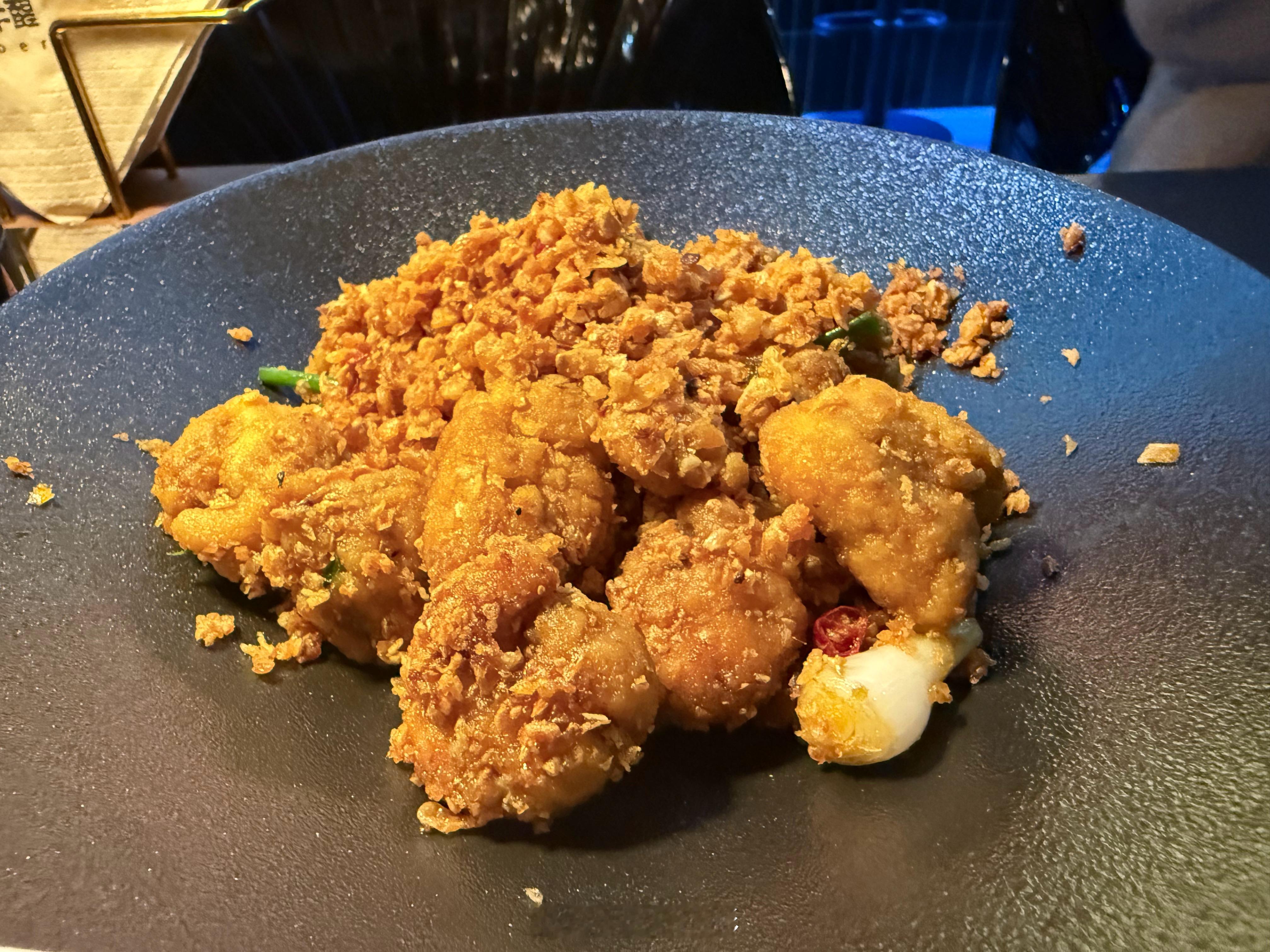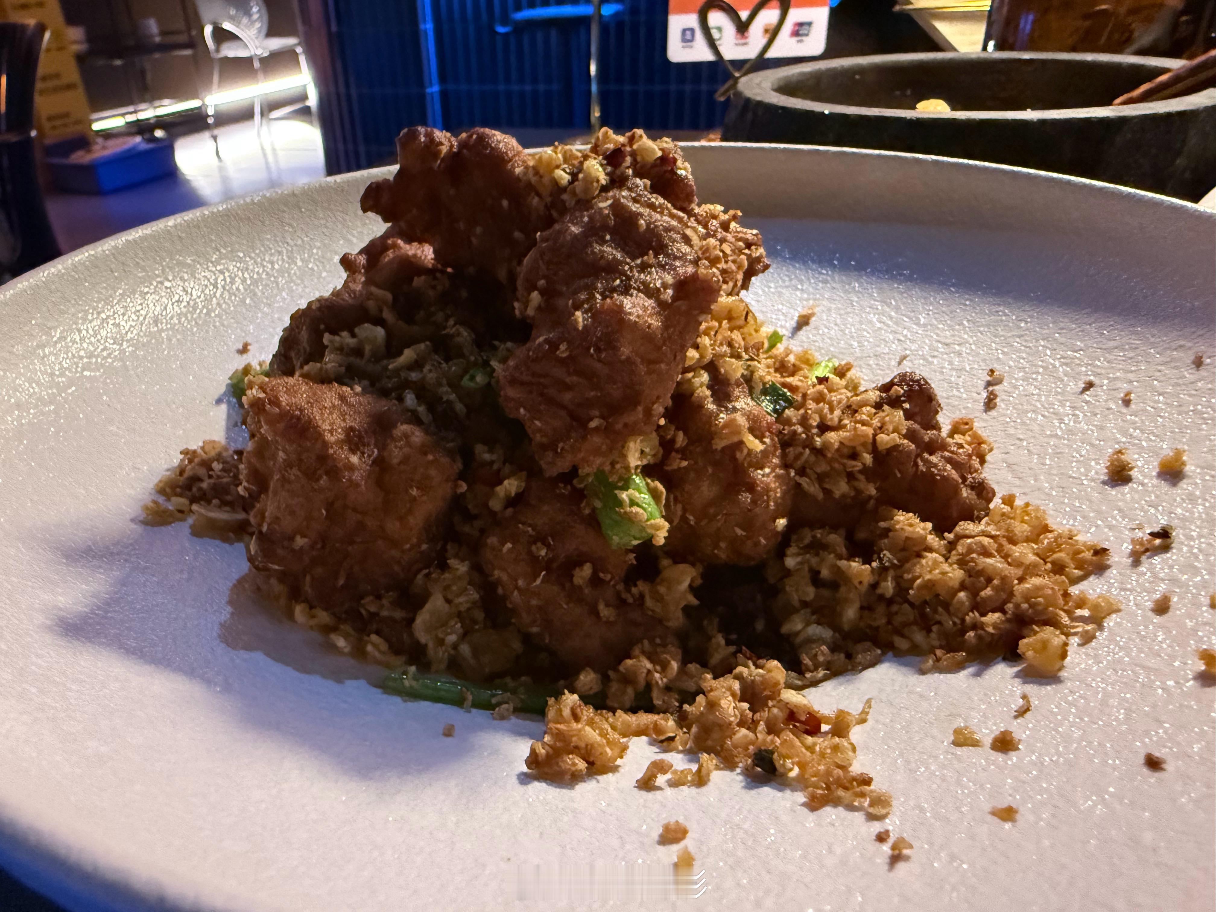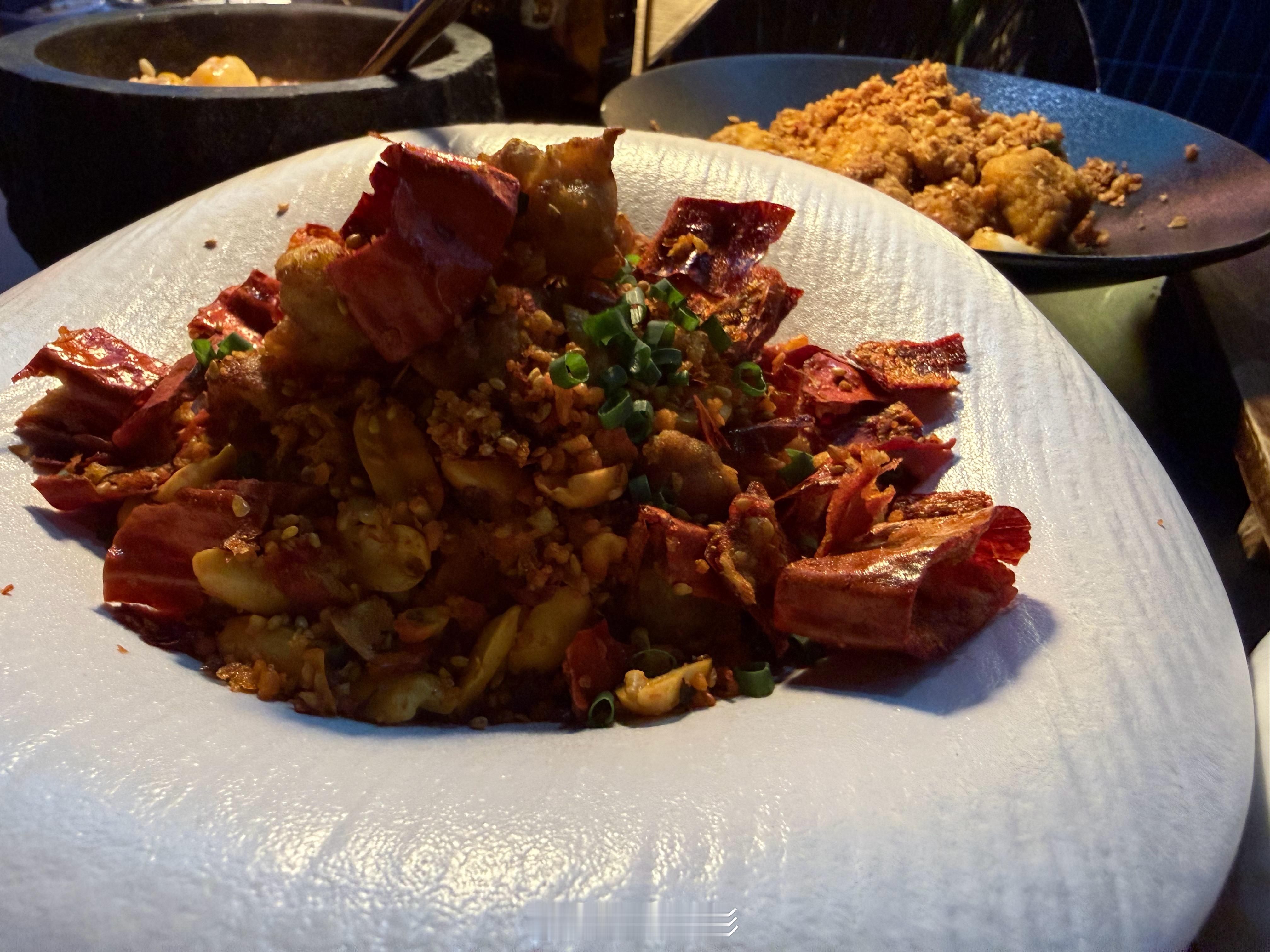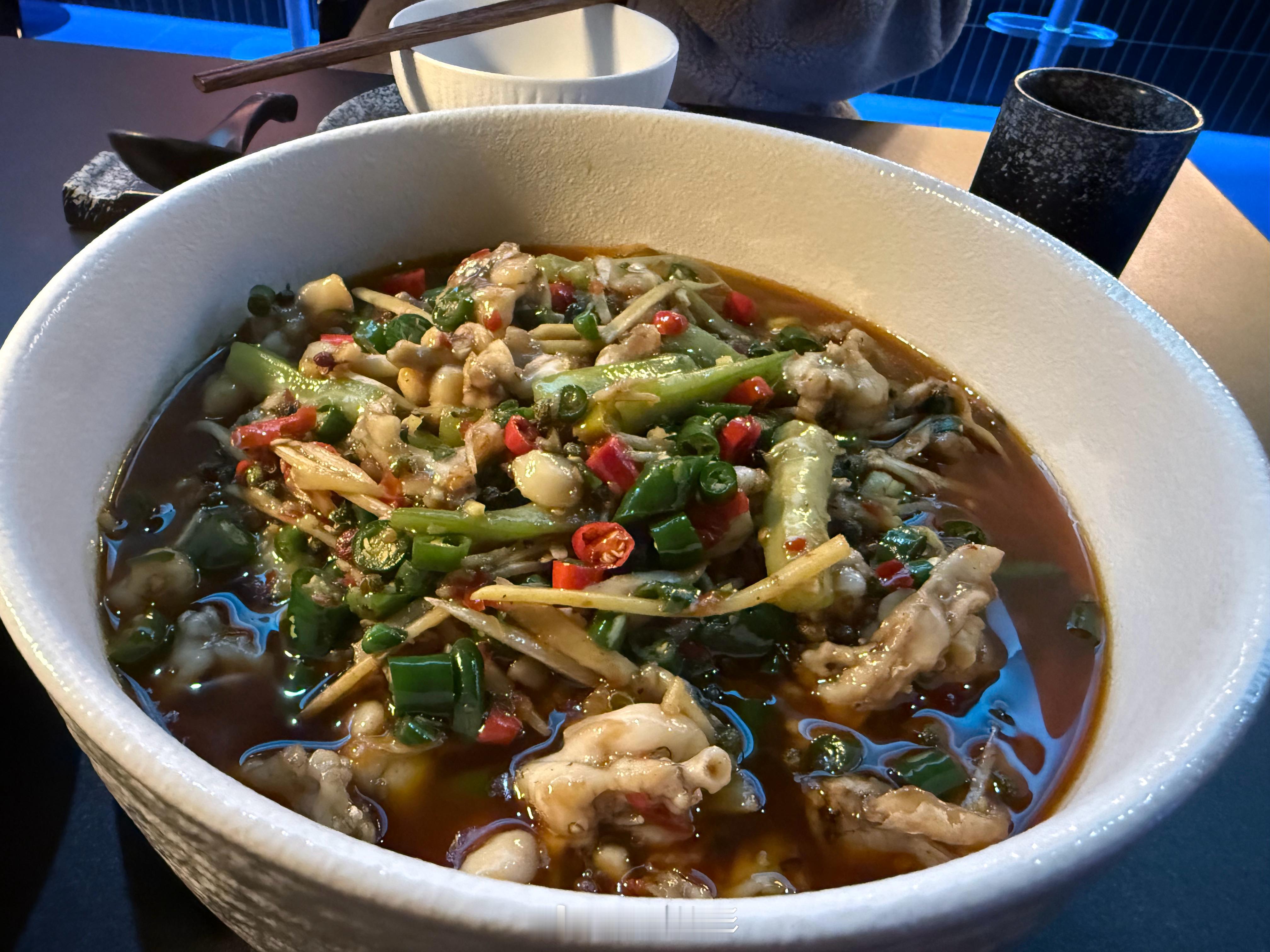鲍鱼烧鸡,姜丝蛙,山药焖花胶,酸汤海鲜烩饭,辣脑花,红油抄手,虾仁粉丝煲,炸排骨,蒜香掌中宝,烧椒皮蛋……这家店明明以鸡尾酒为主题,我们硬是一点酒没点,光顾着吃了[泪奔]