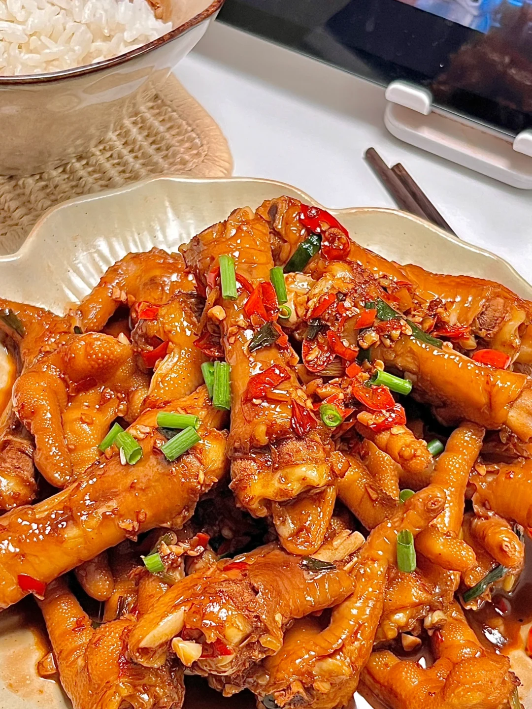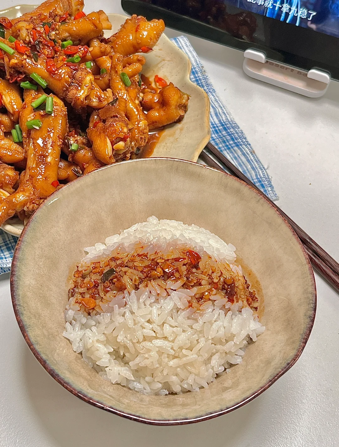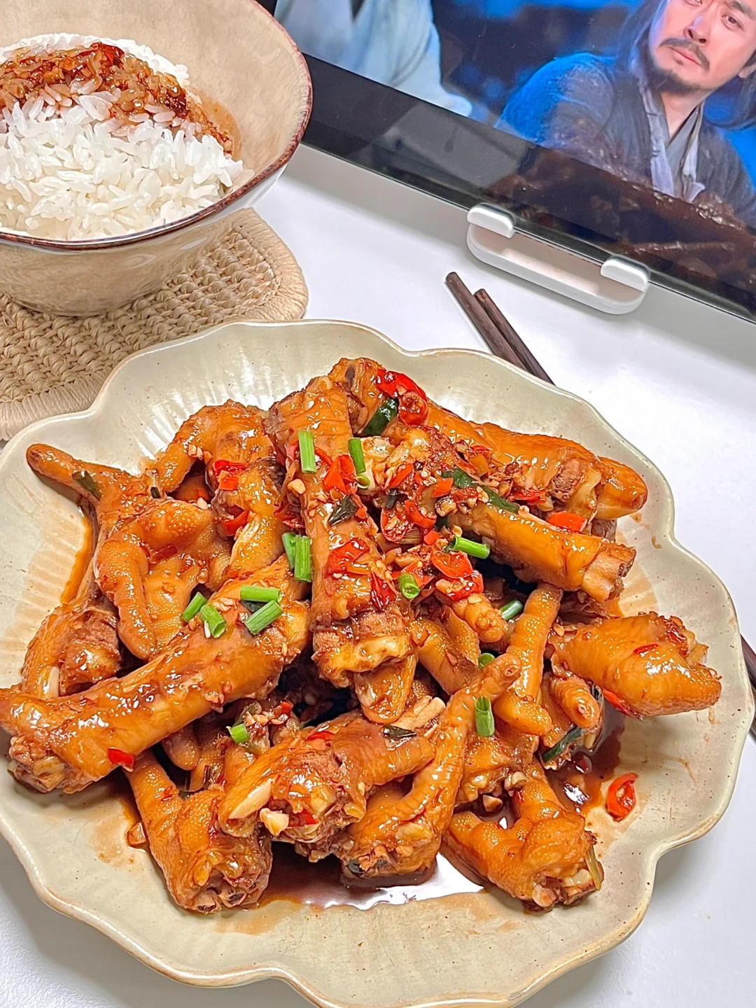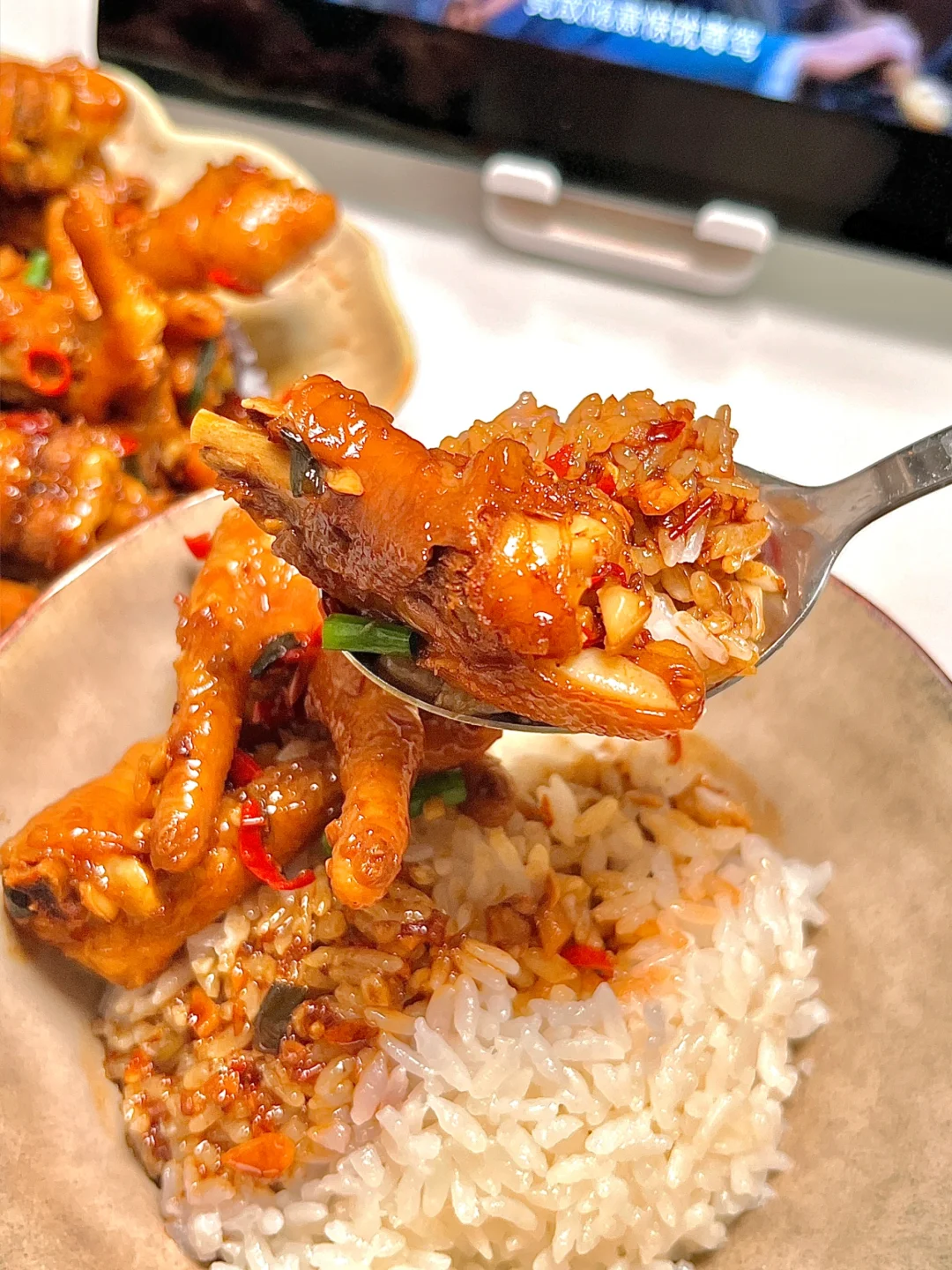 夏日消暑风味集 🍴今日份一人食: 辣炒鸡爪盖饭 冷萃绿茶 . 好吃到让我在发一遍的炒鸡爪子,爱吃鸡爪的宝,一定要试试介个辣炒鸡爪😎好下饭呀!软糯脱骨[棒R]浓郁醇厚的酱汁浇盖在米饭🍚上,一吃一个不吱声。 爱吃鸡爪的宝子一定要试试呀✌🏻