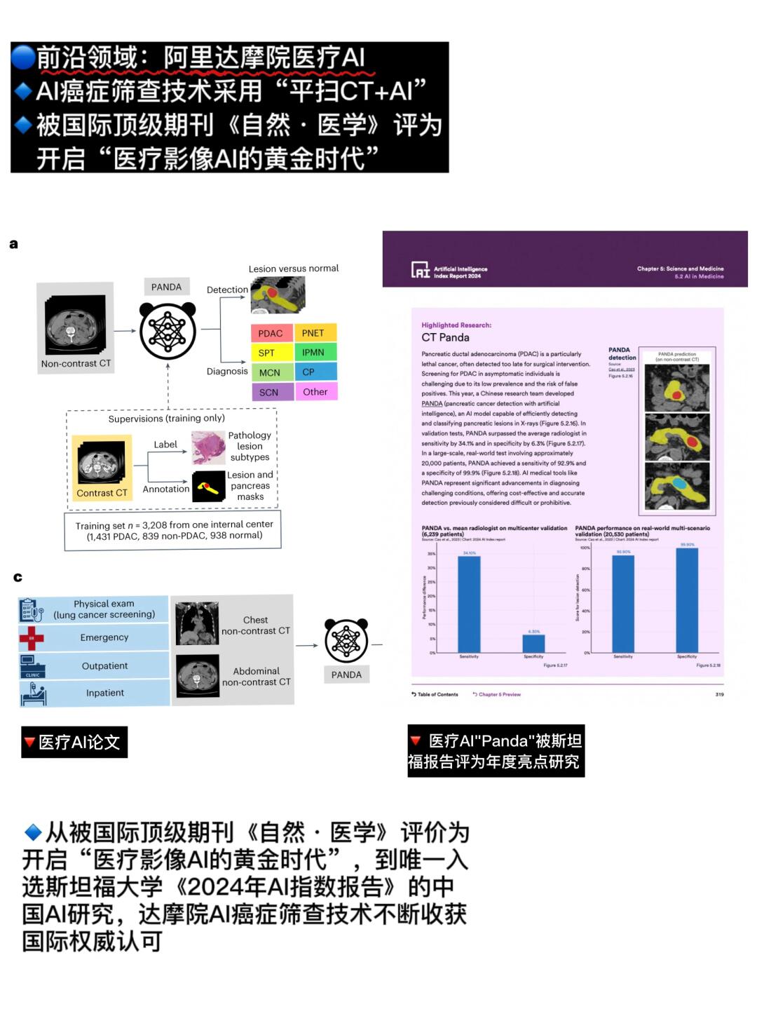 印象深刻的还是中国公司达摩院分享的癌症筛查技术,一次平扫CT就能查出有没有癌症,病灶位置在哪。一开始我也在想这样的效果真的不是打嘴炮吗?但这项技术是经历过临床试验的,联合国现场就有一位被查出早期胰腺癌,接受手术后痊愈的病人。那可是号称“癌症之王”的胰腺癌啊,都无所遁形了。不敢想这个技术能给普通人的生活带来多大改变