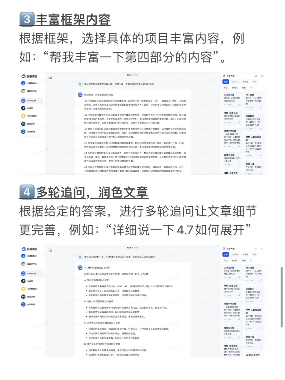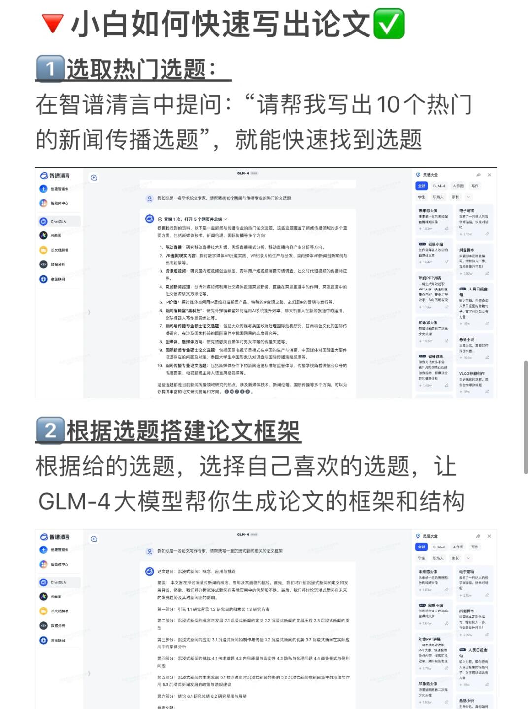 科研论文对读研和考研复试很重要,小白可用智谱清言,利用对话解决论文等通用问题,比如选题、框架等,大模型GLM-4很适合小白建立论文模型。原生功能强大但操作方法很简单:在对话框简单描述搜索,例如“帮我查找10个x领域热门选题,就能速检索全网高质量文献和选题,并搭建自己的框架,然后描述具体需求丰富文章,通过多轮追问细化润色文章,还能改写或分析图表顺序让论文更精彩