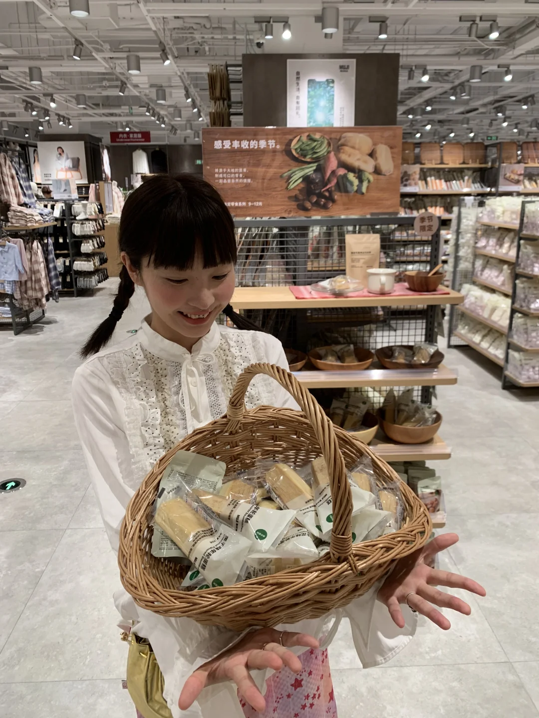最近刷到七宝领展居然悄咪咪开了家MUJI新店!!🤩 我直接一个弹射起床冲出门 这都开到我家门口了,当然得去看看! 结果一进门…真的又大又好逛,直接把我硬控住了!! 新款法兰绒床品区直接把我锁死!!🔒 软fufu、暖呼呼!!躺上去像被云朵裹住!!☁ 而且配色也太高级了吧!! 低饱和莫兰迪色系~拍照根本不用调滤镜!!📸✨ 零食区也是多了很多新面孔!!爱了爱了! 直接都进我的筐里! 我单方面命令MUJI: 请加速扩张!! 爱逛你就多开点!! 最好开到我家单元门口谢谢!!🙏