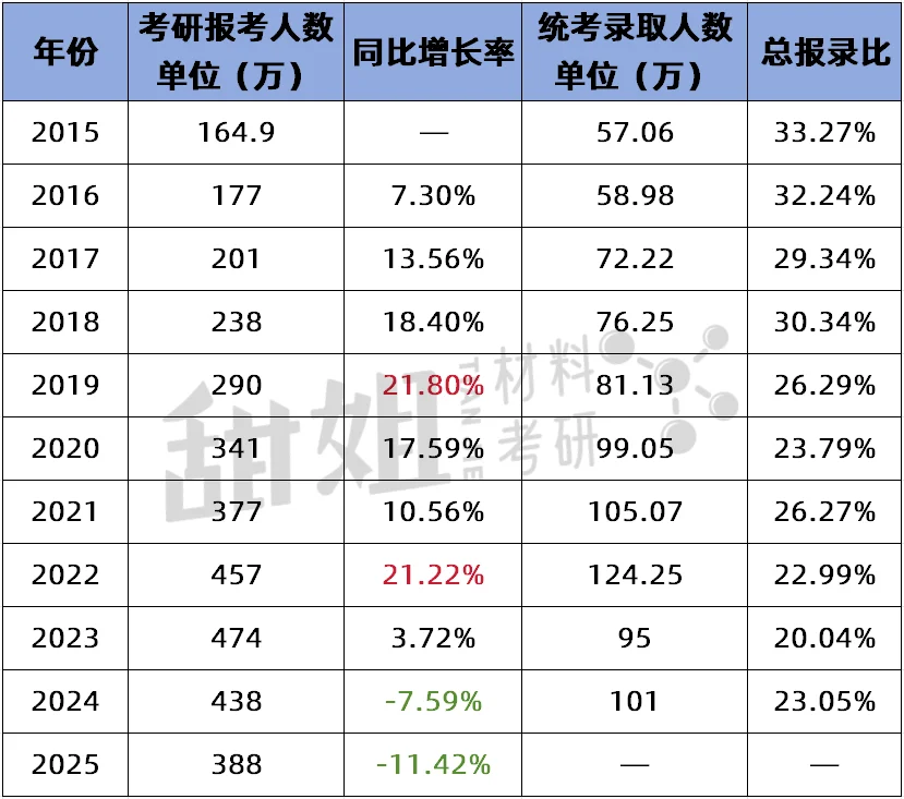 根据教育部部署2025年全国硕士研究生招生考试安全工作公告得知,2025年全国硕士研究生报名人数公布——388万。在去年下降36万后438万的基础上,再次暴降50万! 客观来看,考研人数下降是好事,但我们也不能掉以轻心,人数下降不代表难度就一定会下降了。最后30天,大家也要好好加油!上岸见! 25考研人数 25考研 材料考研 报名人数 考研 考研冲刺 考研倒计时30天 材料科学与工程