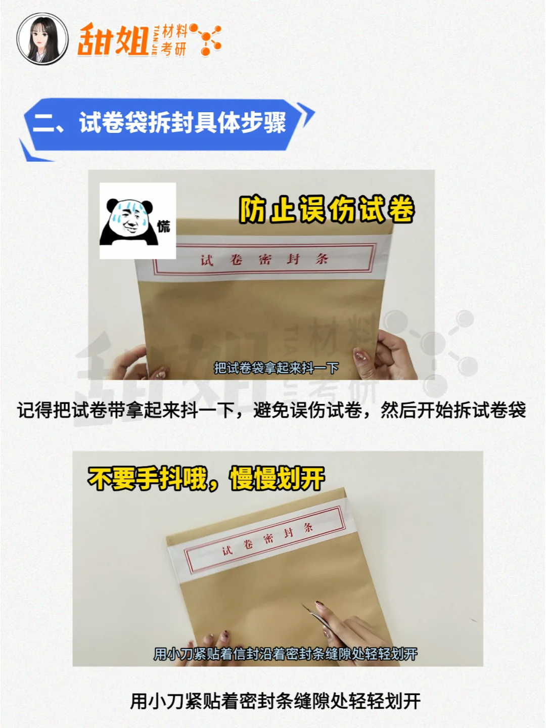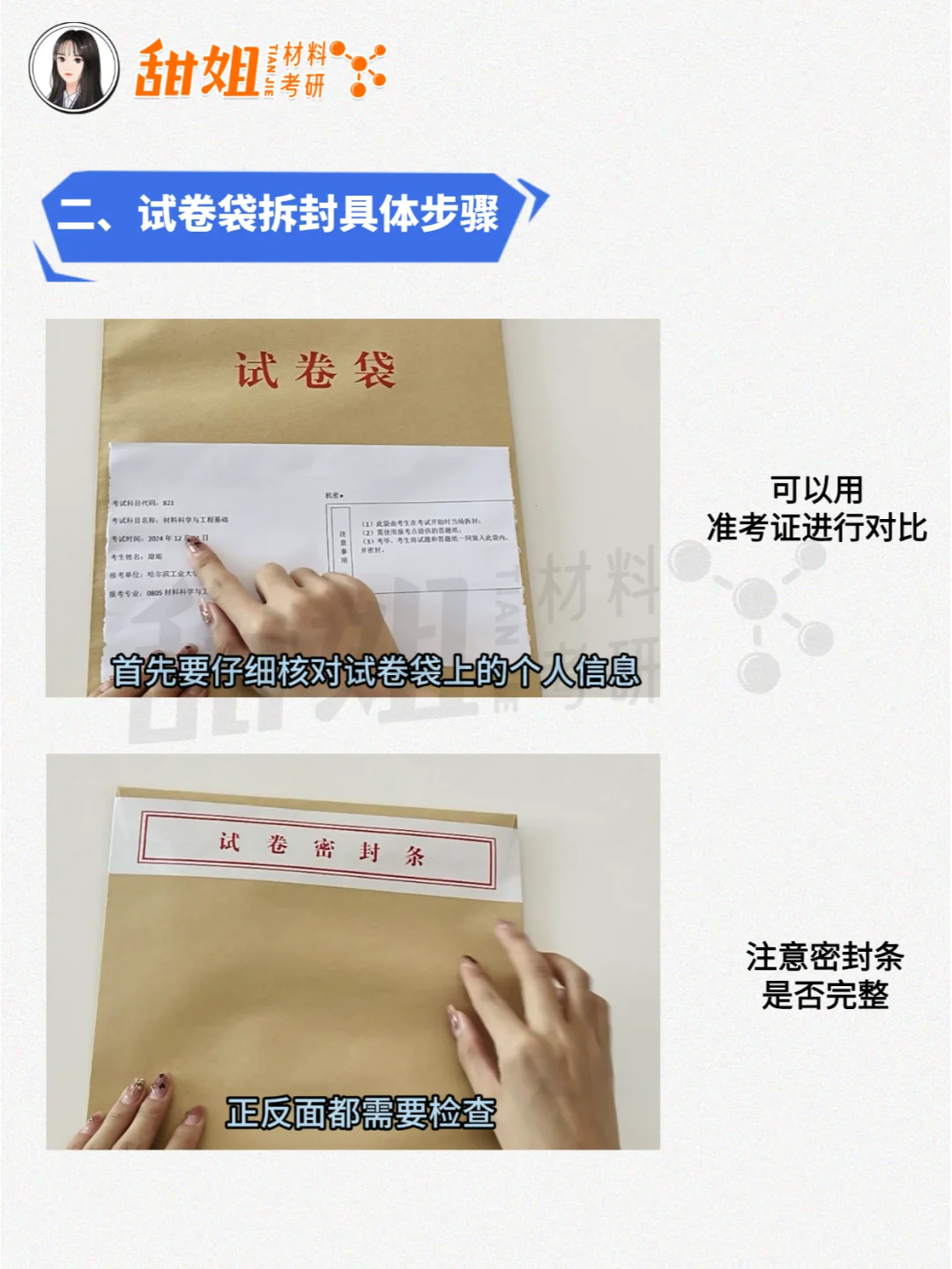 考试时间越来越近,大家准备的如何呢? 今天给大家分享一下咱们专业课自命题试卷袋拆封流程! 材料考研 25考研 材料科学与工程 材料与化工 材料科学基础 考研倒计时 试卷袋拆封 上岸