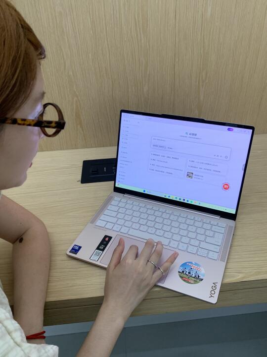 周末和朋友一起去了五角场,想试试新电脑。看到了联想这款YOGA Air 14 Aura!第一次被电脑的颜值吸引🤩粉粉的好喜欢,还很轻薄!无论是上课还是带出去,放在书包里很轻巧便携!联想YOGA Air 14 Aura就是我的轻!薄!救!星!🌟