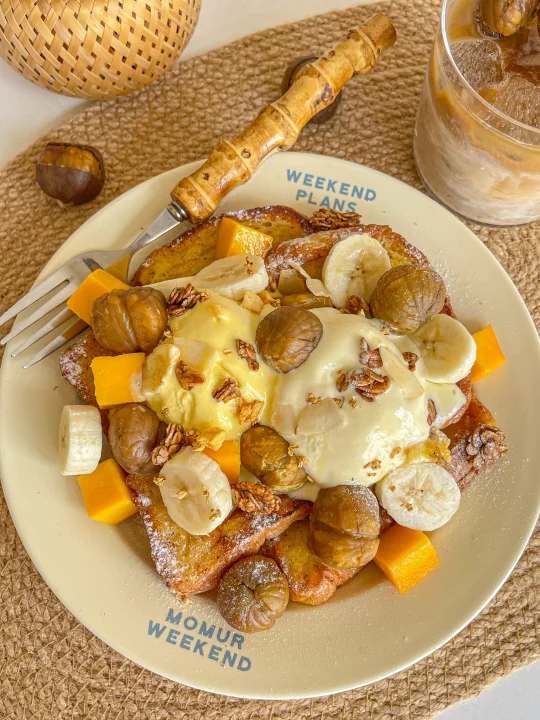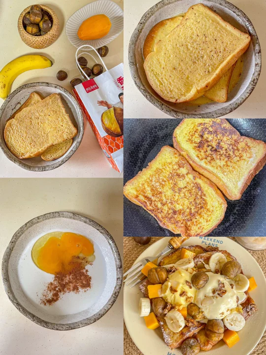 板栗水果冰淇淋法式吐司 不仅做法简单 口感也超惊艳! 吐司微焦的外皮里面吸满了牛奶 软fufu的 叠着冰凉丝滑的冰淇淋和绵软香甜的板栗 一口下去冷热交织 脆 软 糯 冰四种口感在嘴里层层化开 每一口都超满足!栗子的口感真的太加分了230℃恒温慢烤出来的栗子颗颗饱满 嚼着粉糯又扎实 搭配吐司 又香又甜 完全不会腻~