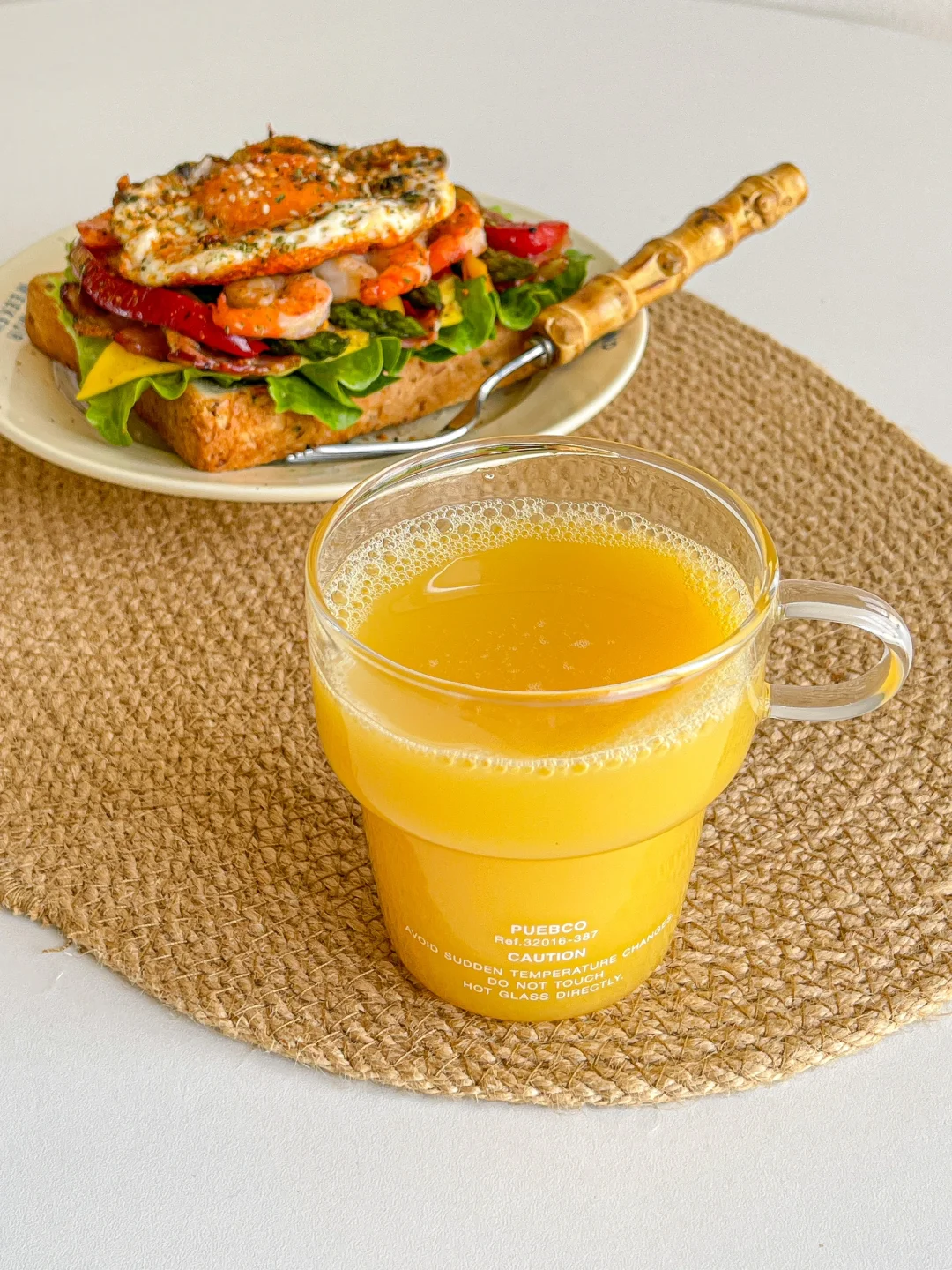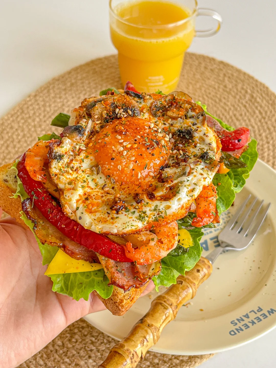 10分钟早午餐🍳培根口蘑鸡蛋三明治🥪橙汁🍊