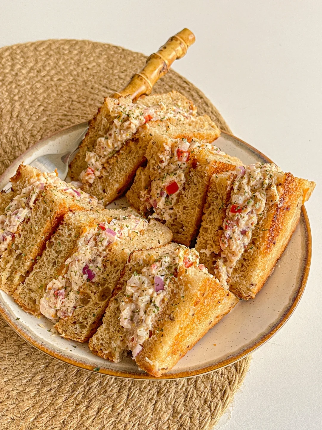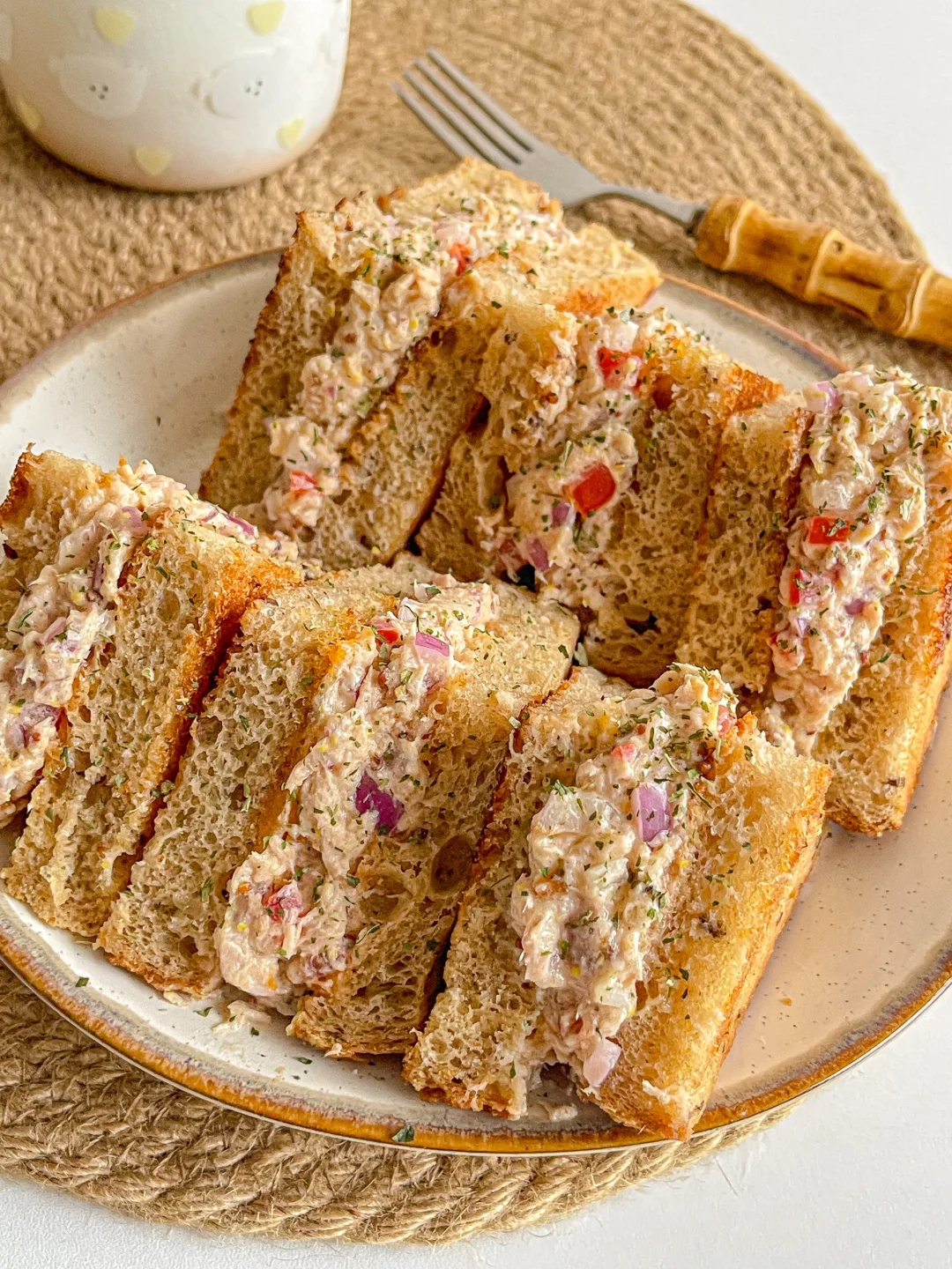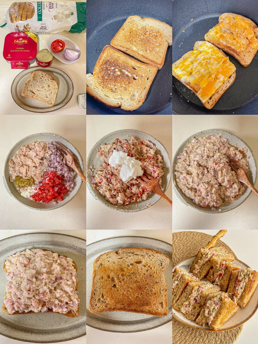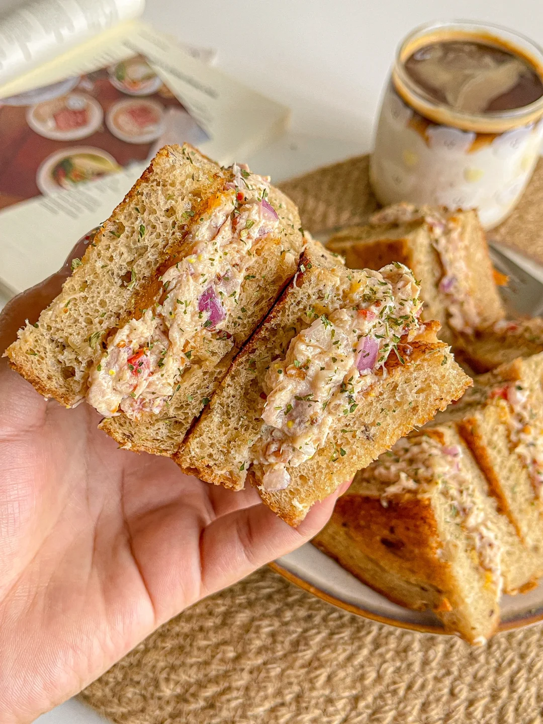 料多多的金枪鱼三明治~ 食材:🥣 吐司➕芝士片➕金枪鱼➕番茄➕洋葱➕希腊酸奶➕蛋黄酱➕芥末籽酱➕黑椒海盐(按口味酌情增减) 自己做就是可以塞慢慢的快~[偷笑R] 一口下去鲜香四溢!chao满足😋