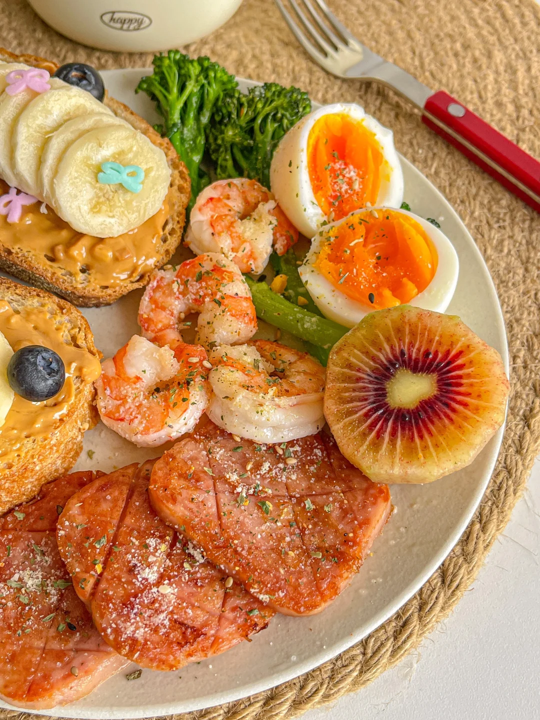 元气早午餐🍙粽子虾仁午餐肉溏心蛋拼盘🍤
