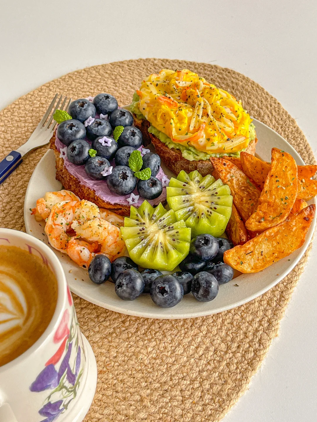 理想brunch🫐欧包三明治烤薯角拼盘🍤热拿铁