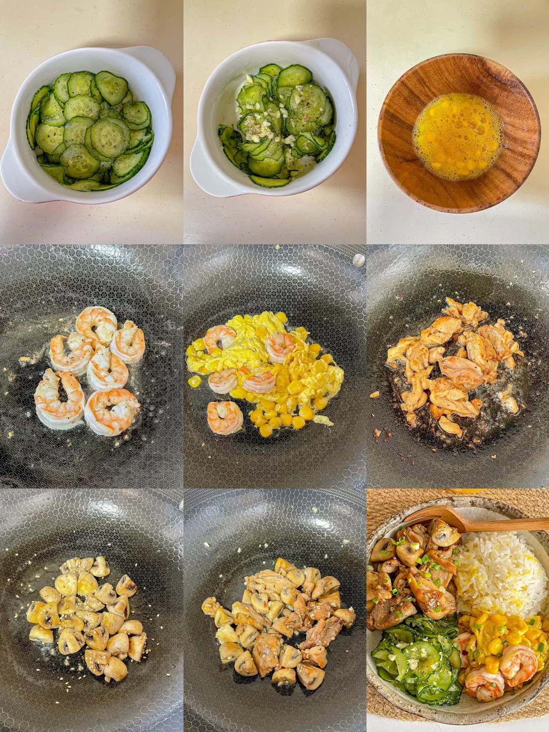 干净饮食🥗口蘑鸡腿盐虾仁滑蛋盐渍黄瓜🥒