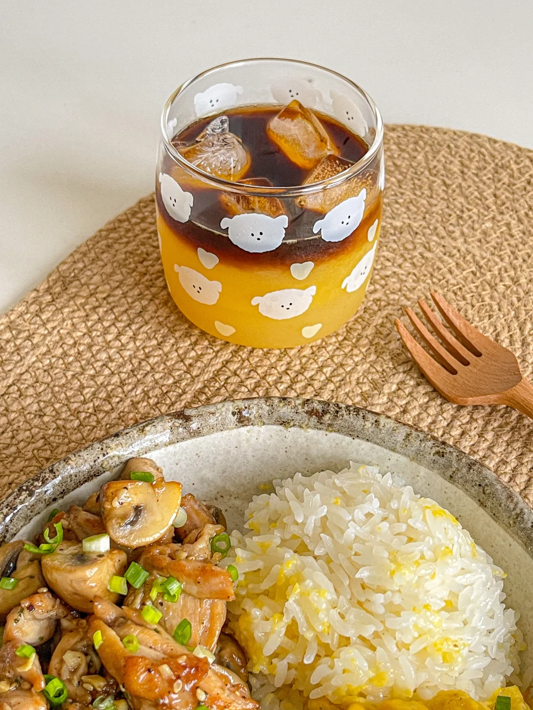 干净饮食🍃芦笋口蘑牛肉炒饭🍚梨汁美式🍐