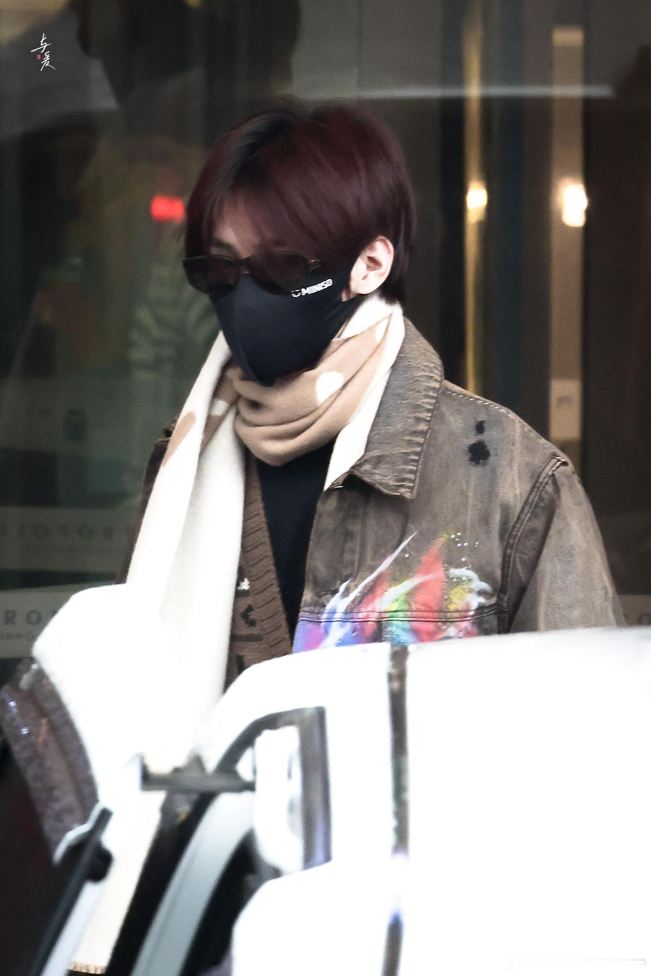 张真源回北京路透来啦!棕色涂鸦套装造型好帅呀~