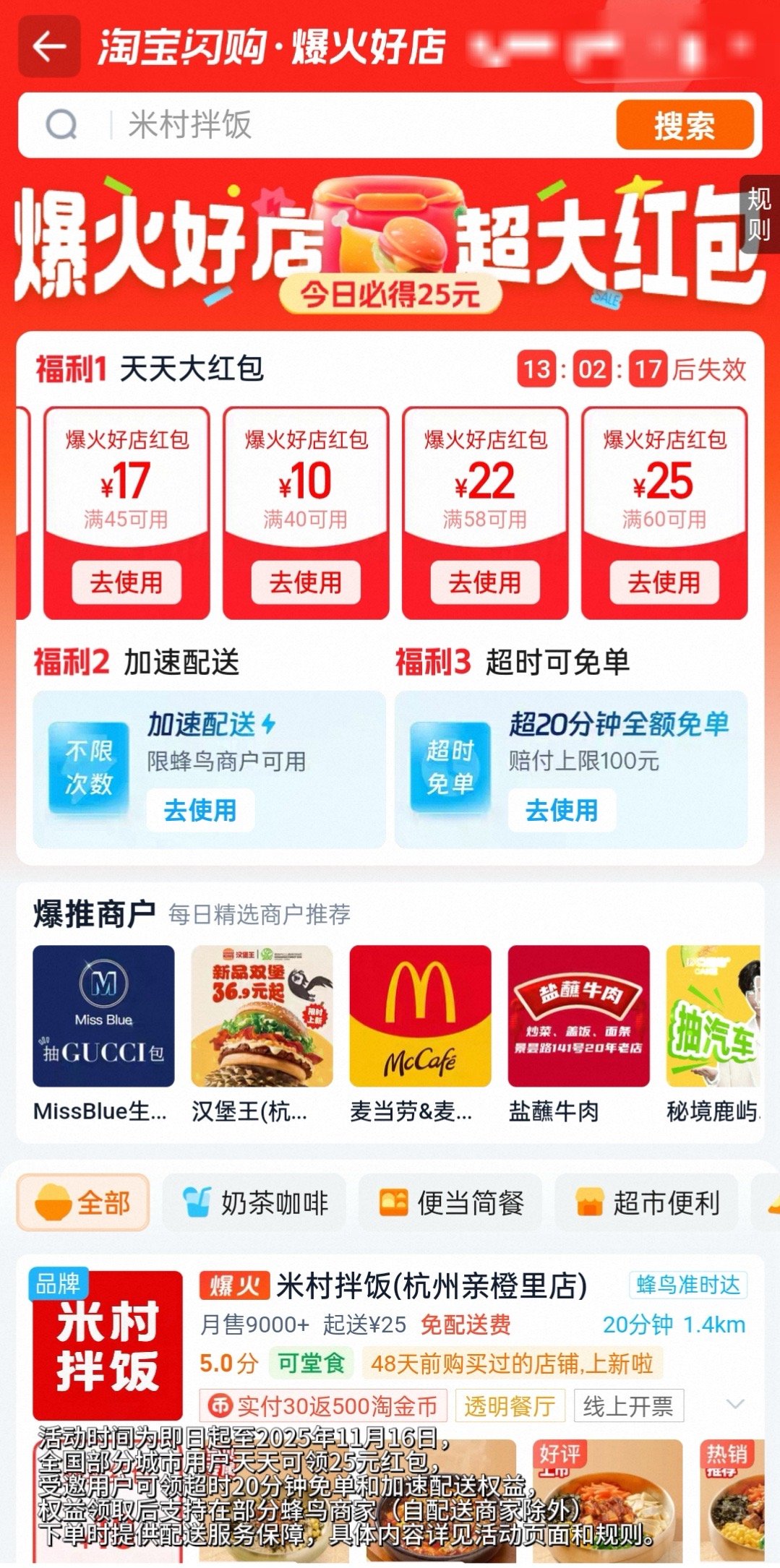 卢昱晓陪你上淘宝闪购好好吃饭 周末放毒时间到!淘宝闪购必点,红包一用,宵夜变得理直气壮!卢昱晓淘宝闪购双11福利大使上淘宝闪购搜【爆火好店】,每天必得25元超大红包,享加速配送,超时20分钟可免单。点外卖认准爆火标签好店,享受三大权益。上淘宝闪购搜爆火好店吃点好的