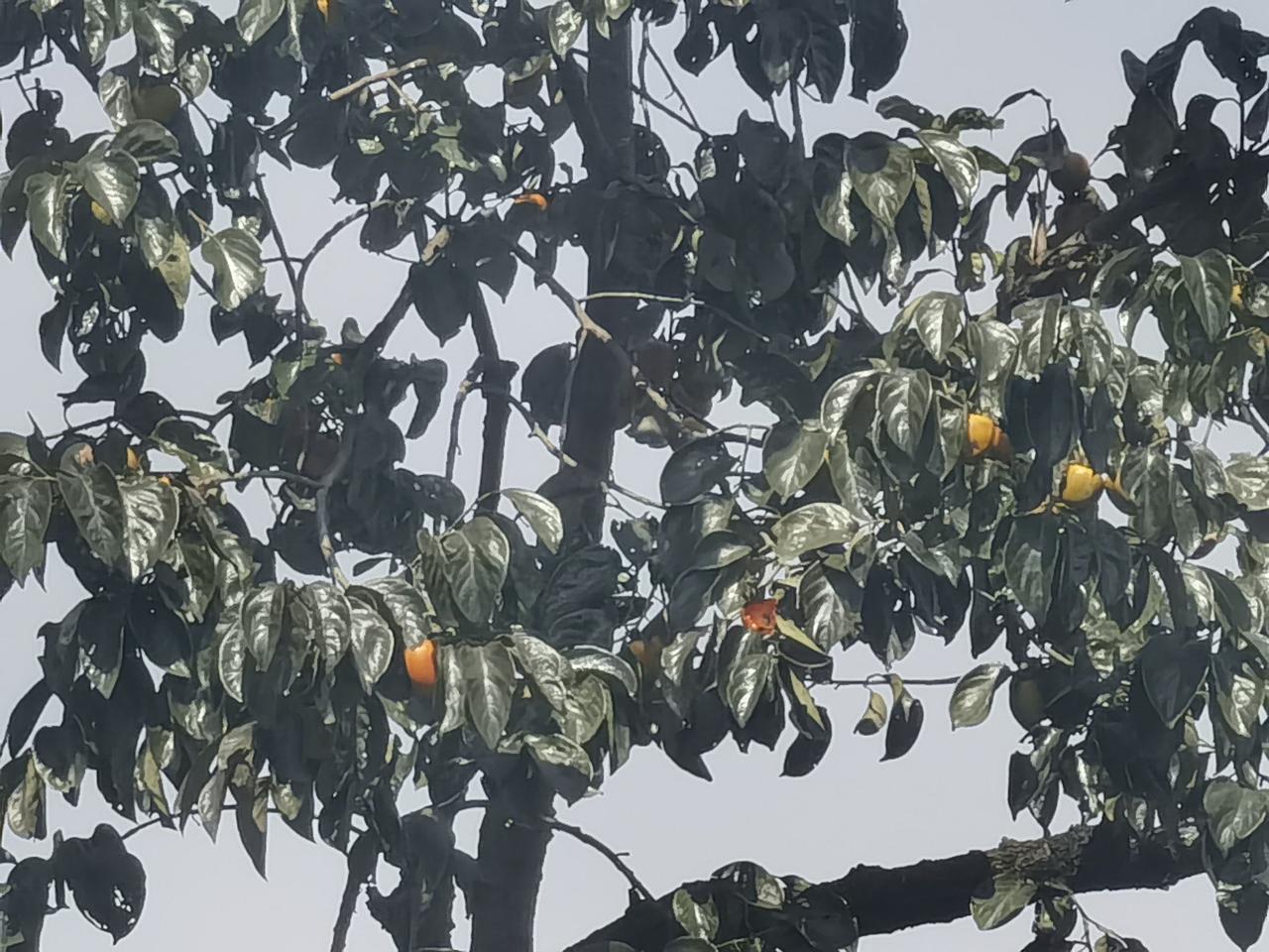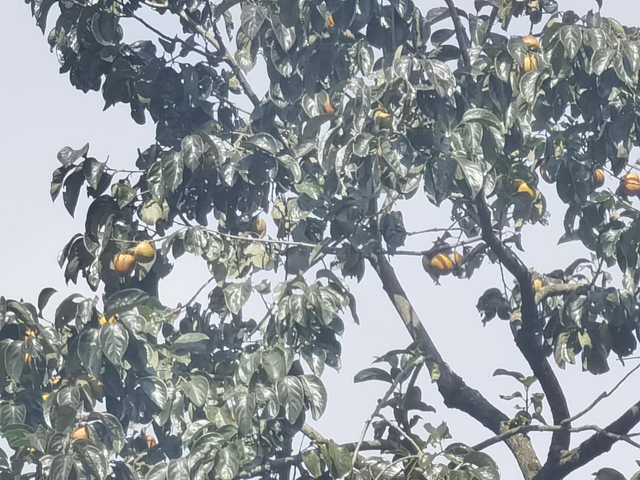《高树柿子鸟喜之》 高树飘柿子, 鸟儿喜爱吃。 每天来巡查, 何时味可滋? 柿子偶熟两, 霸鸟先品试。 落地食未尽, 虫蚁饱餐知。