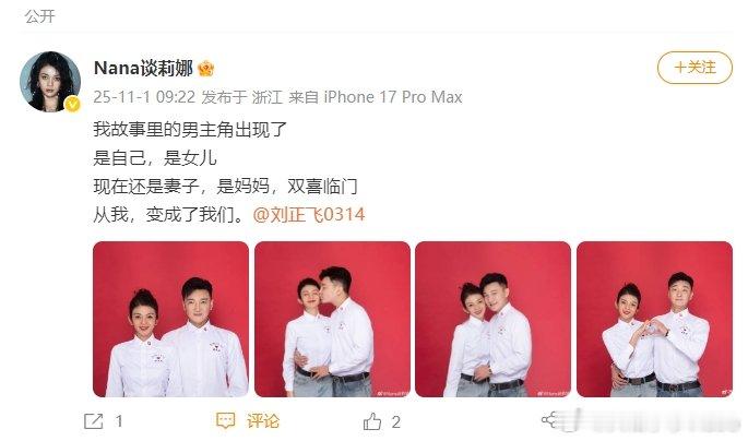 【谈莉娜官宣怀孕谈莉娜刘正飞官宣怀孕】11月1日,发文: