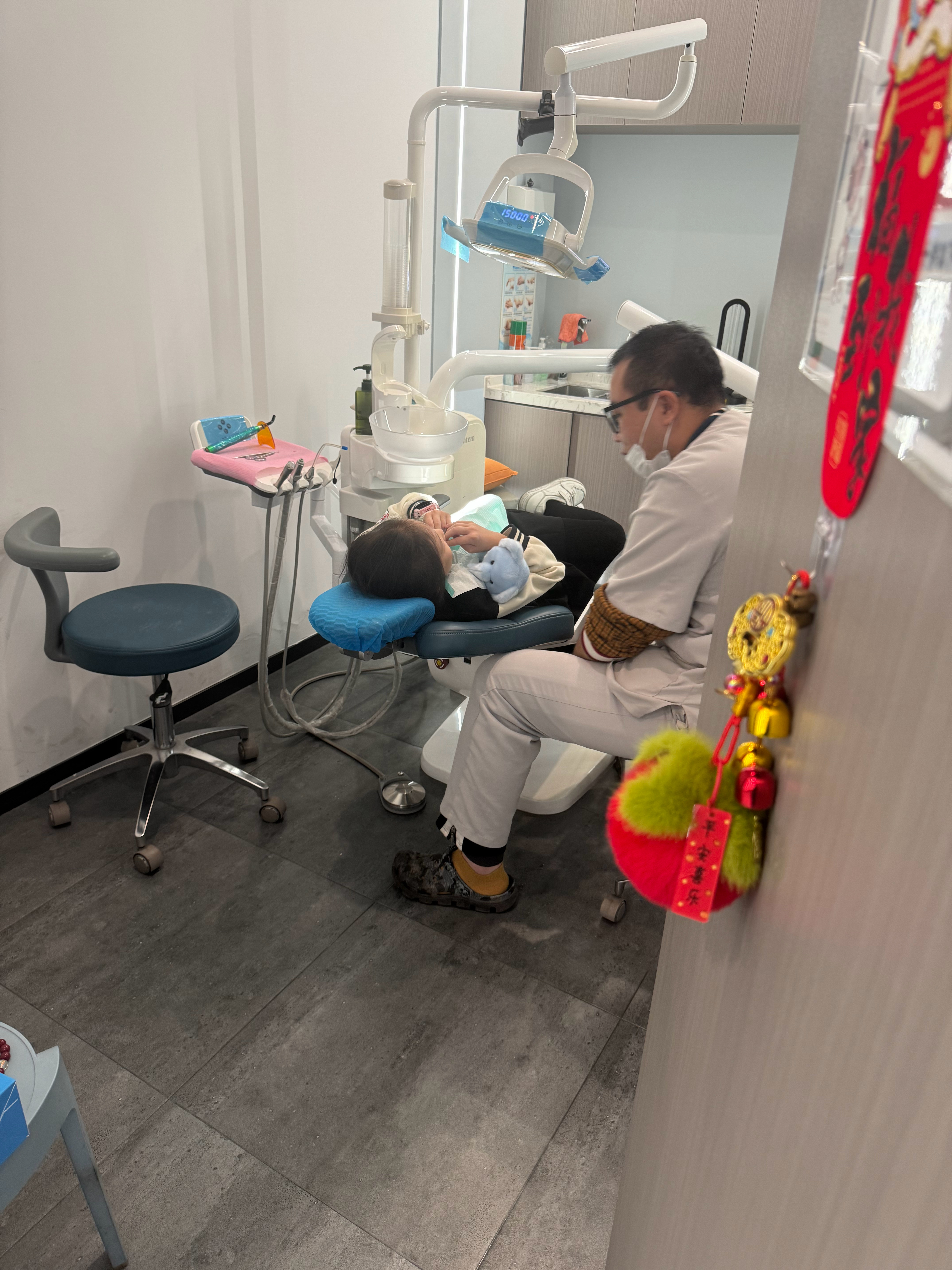 妹妹昨天牙有点要掉,正好今天牙套到了,要换牙套,正好一起弄了。一听说来牙科,给她