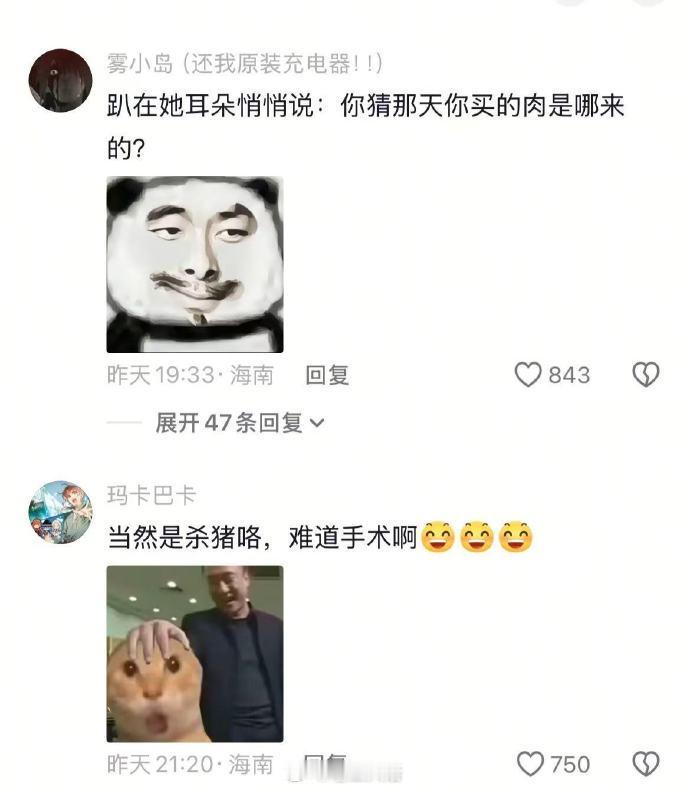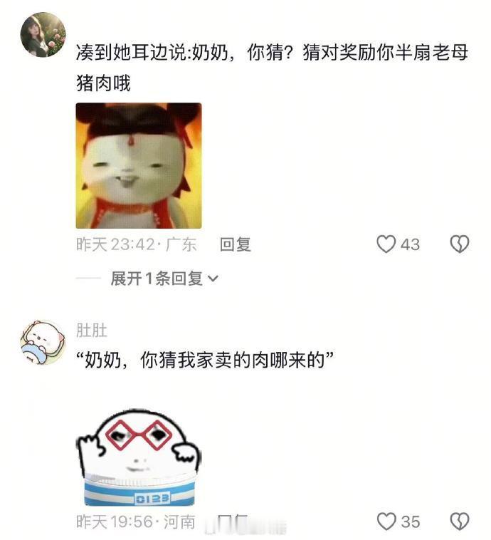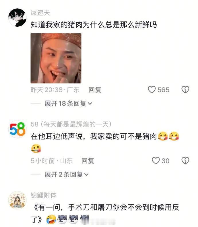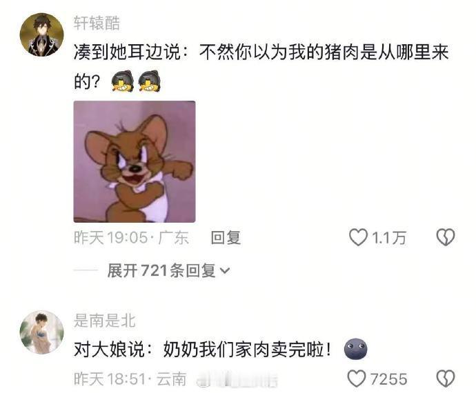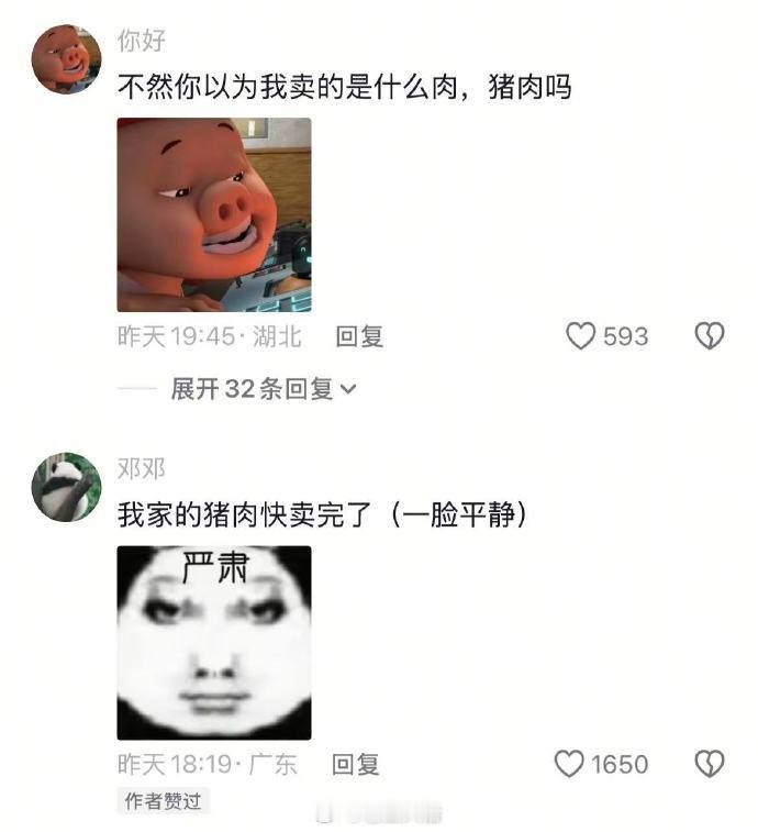 凑到她耳边说:不然你以为我的猪肉是从哪里来的?