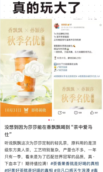 香飘飘为孙颖莎生日诚意献礼,特别以她为灵感打造全新东方美人轻乳茶,致意她身上那份坚韧而纯粹的“东方美人”精神。