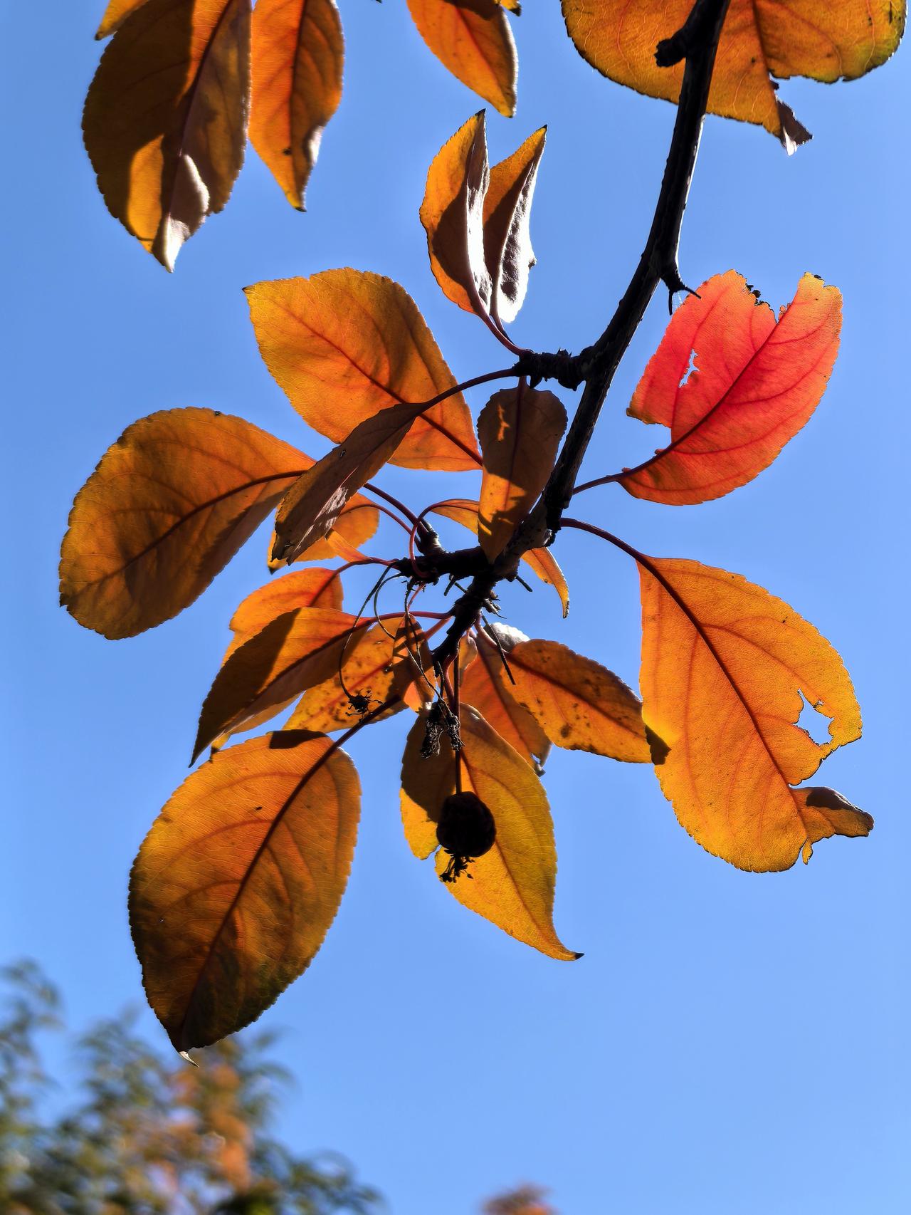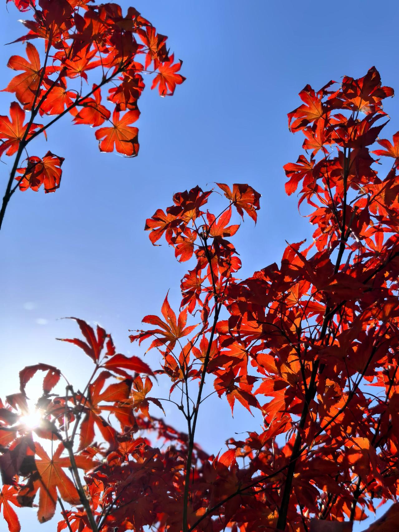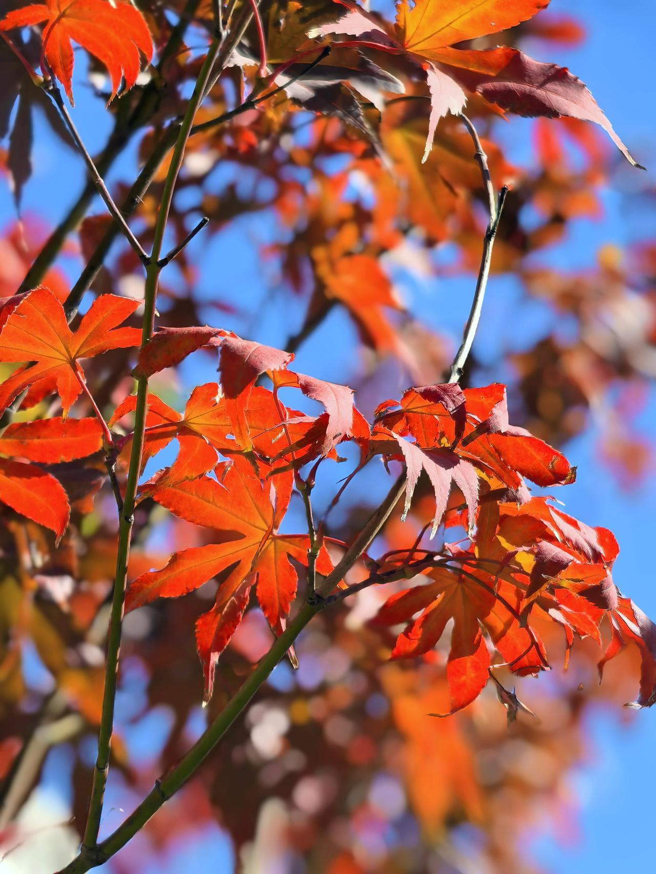 可以分享一张秋景的树叶的照片吗?秋,深了。叶儿,黄了,红了……