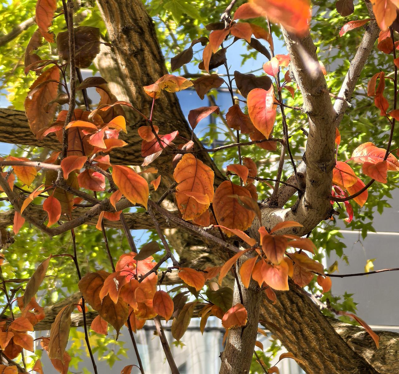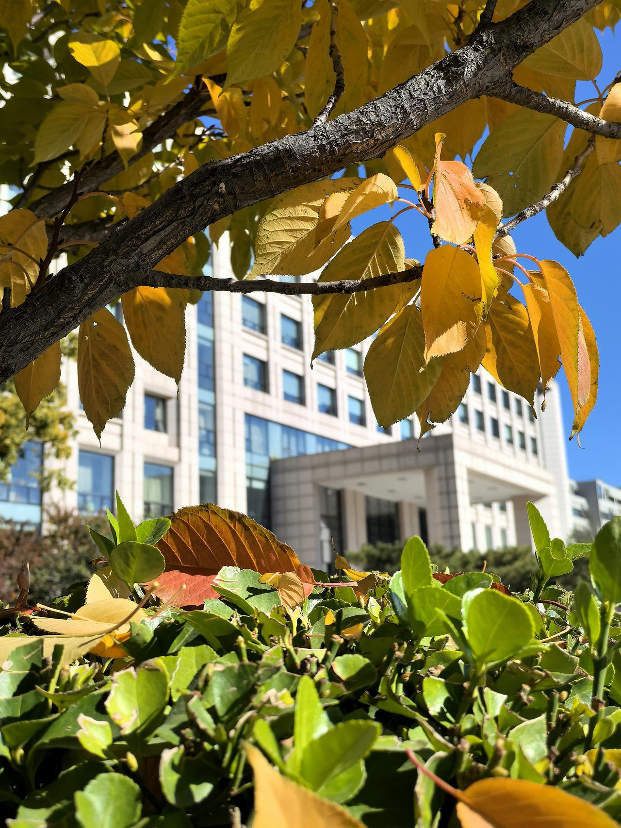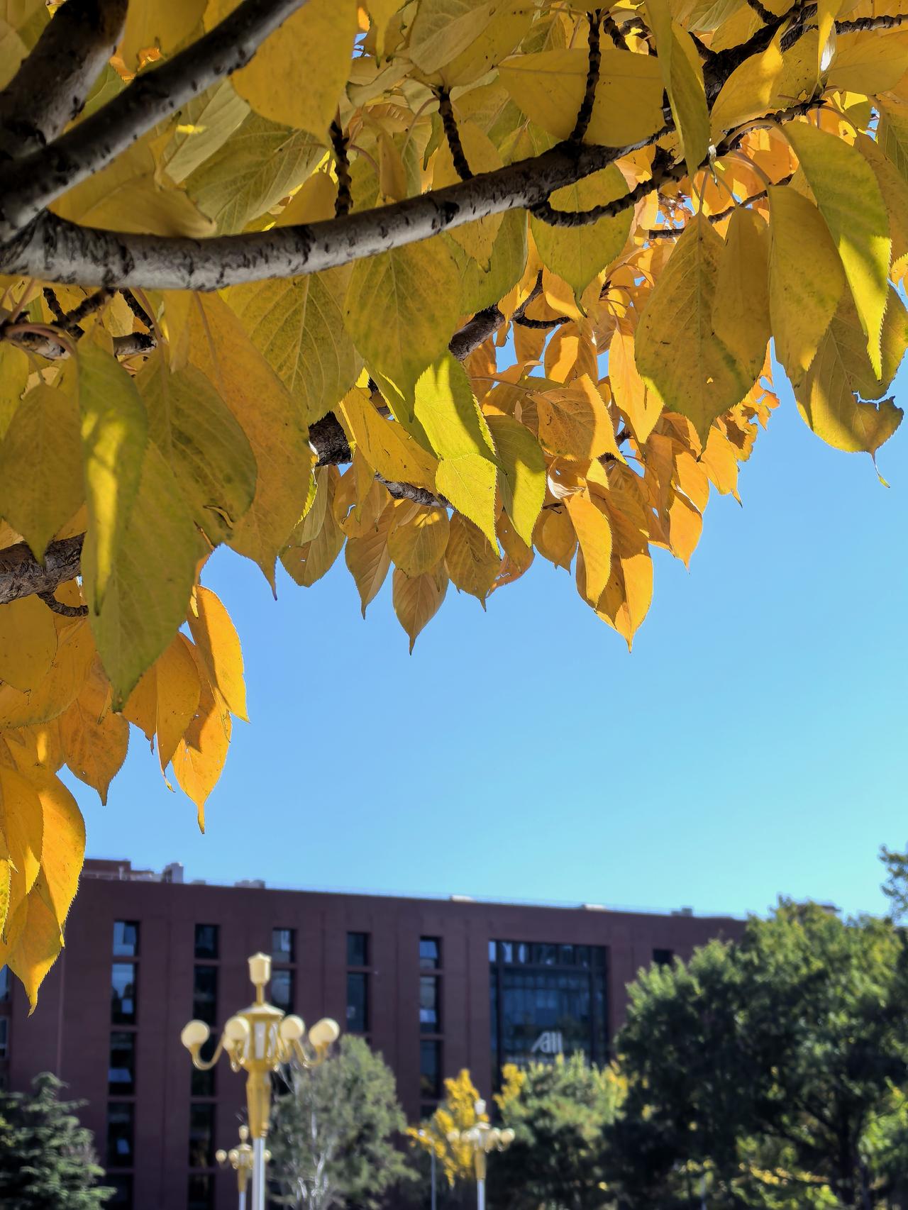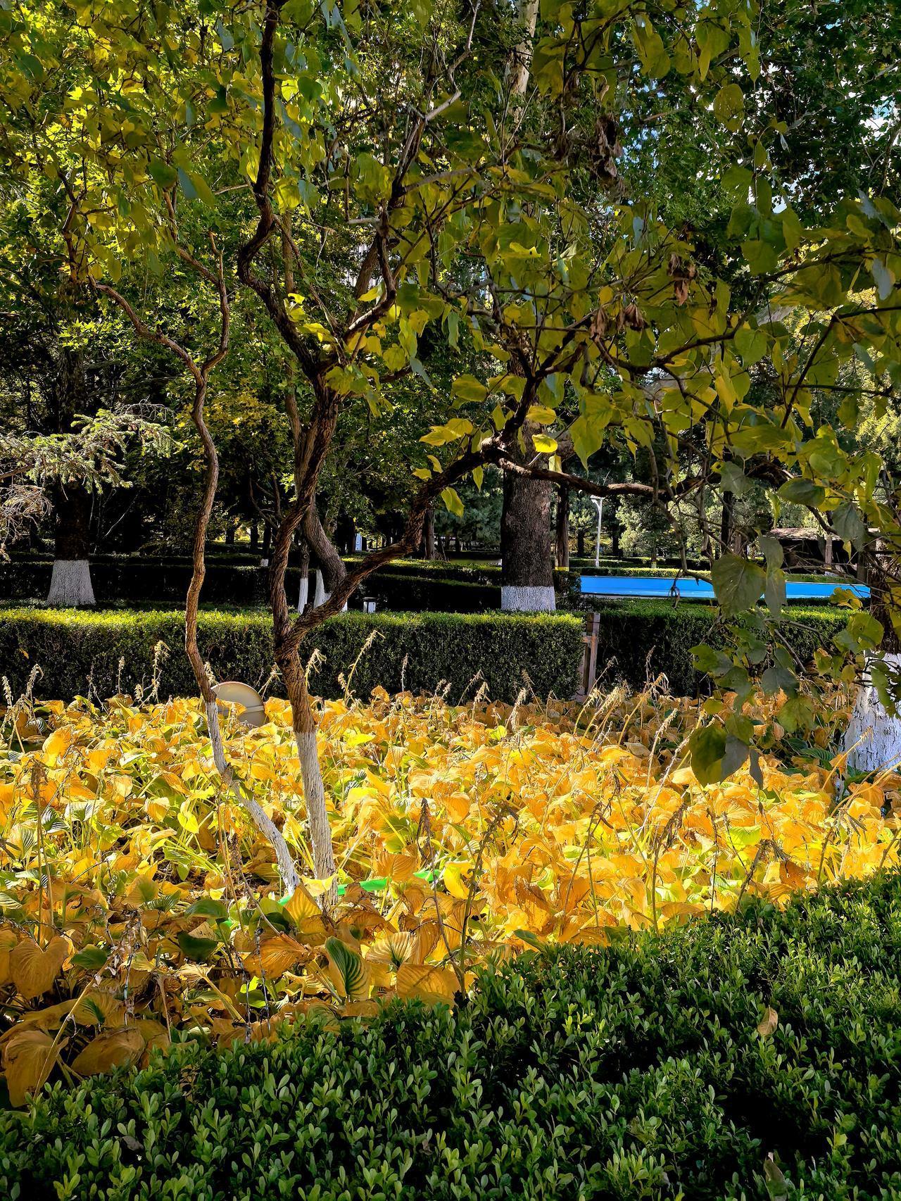 可以分享一张秋景的树叶的照片吗?秋,深了。叶儿,黄了,红了……