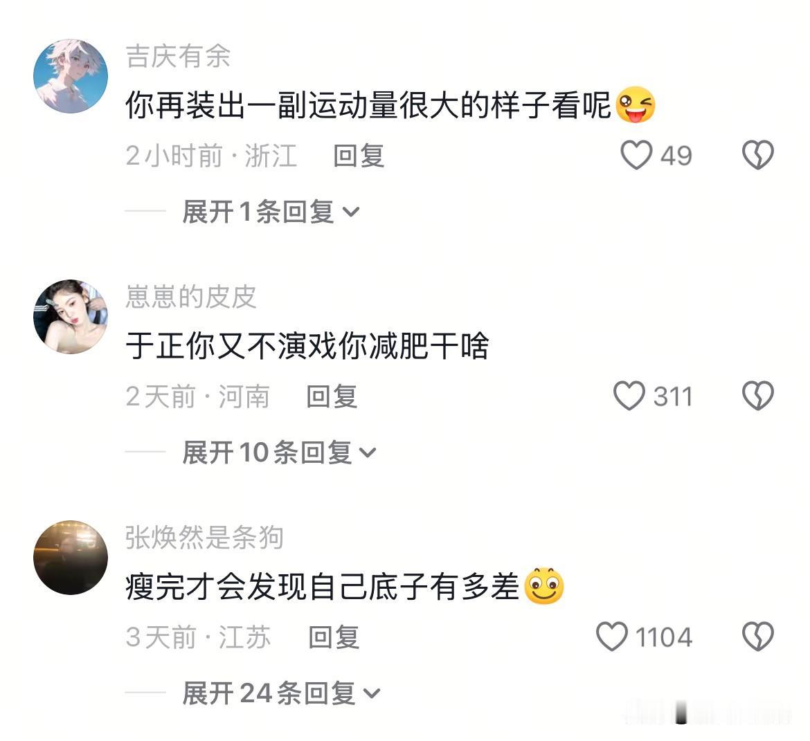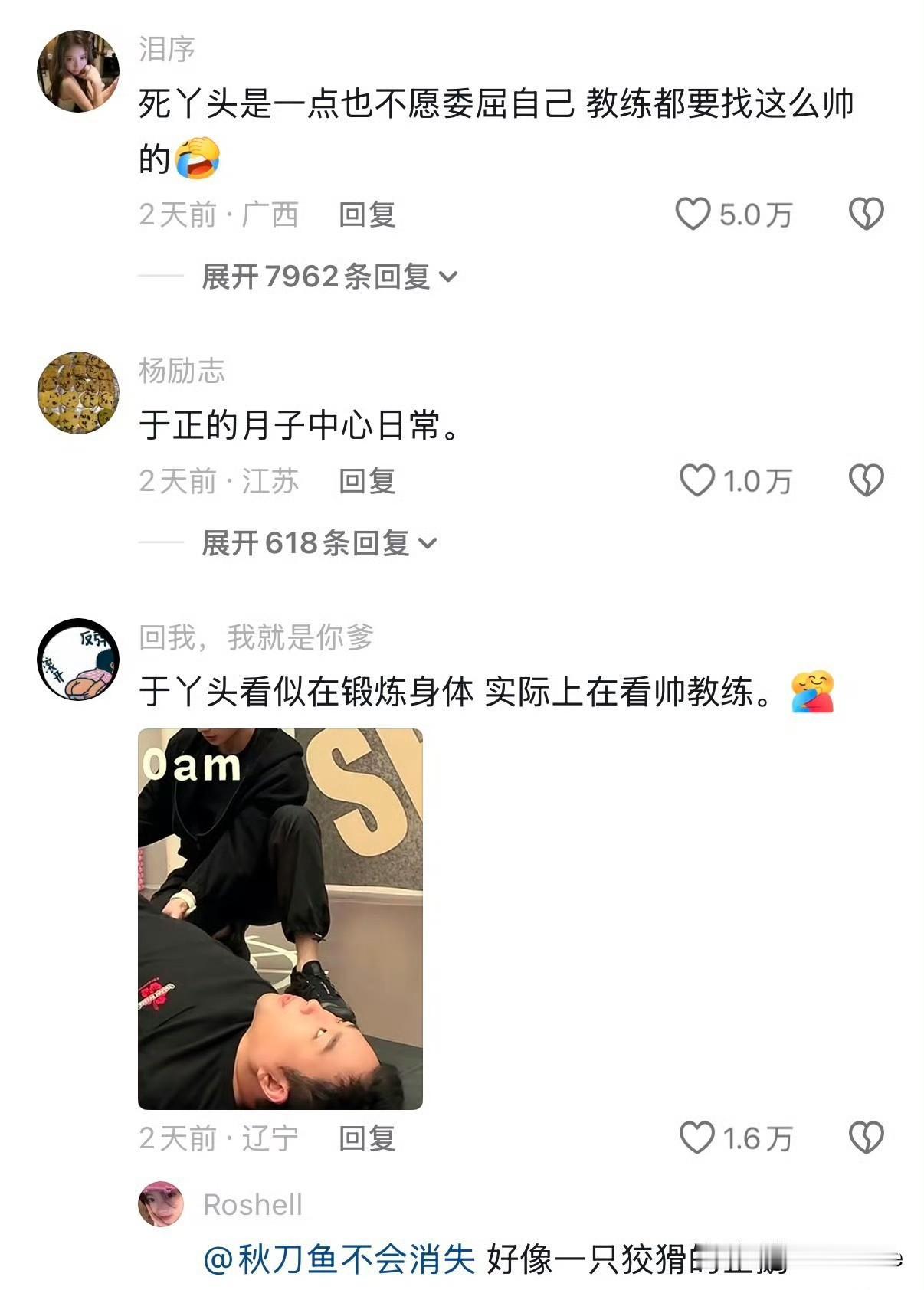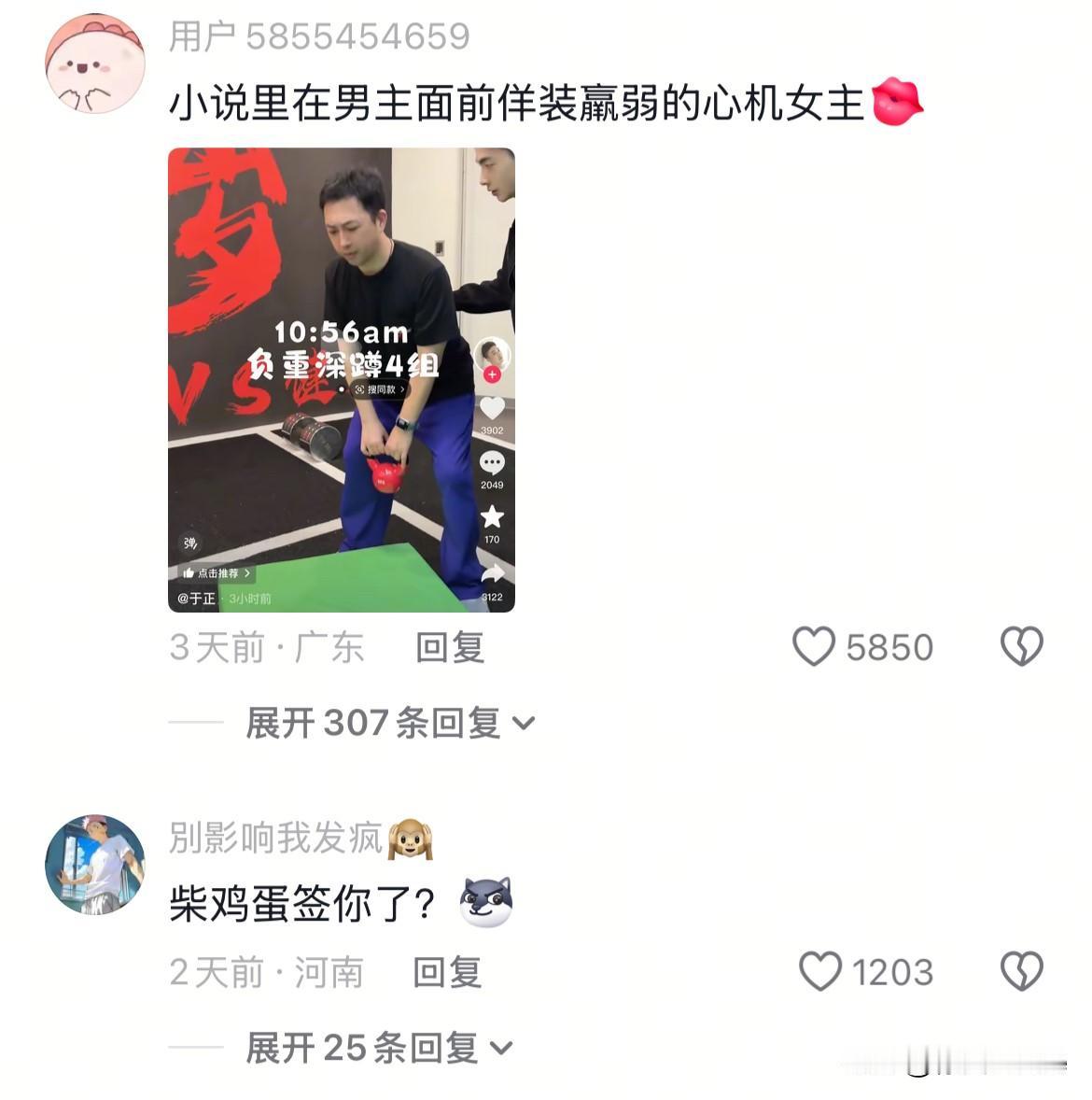 11月1日,于正分享健身视频,遭全网调侃! 有人发现教练很帅调侃于正,“S丫头是一点也不愿委屈自己,教练都要找这么帅的[捂脸]” 仔细的网友还发现,于正健身眼神不对,“于丫头看似在锻炼身体 实际上在看帅教练。” 还有人调侃于正健身“于正的月子中心日常”,只因于正健身的器材都过于轻巧迷你,运动内容基本毫无难度,哈哈哈哈,看完感觉大家不去当段子手可惜了!