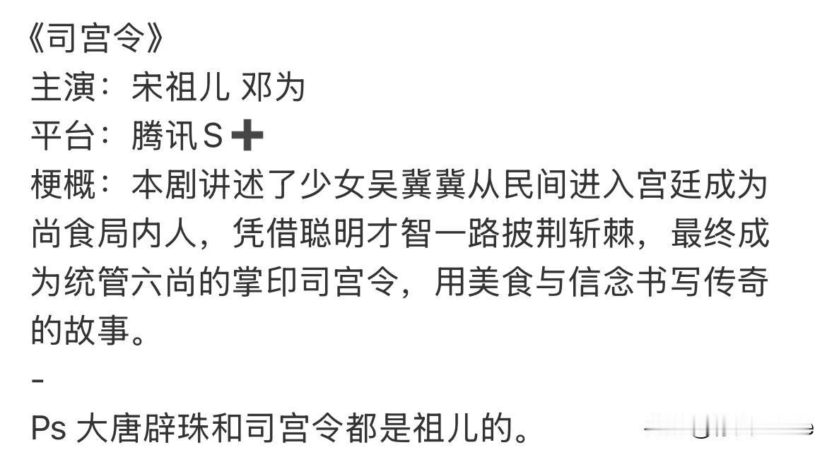 11月1日,宋祖儿,拍不完,根本拍不完! 刚跟陈鑫海合作完《表妹万福》,又要跟邓为合作《司宫令》,接下来还有跟李昀锐的合作,一部接着一部,基本全是无缝进组状态! 宋祖儿回归后由于积压剧成绩不错,所以接的剧水准都很高,基本都是S➕大制作,合作的也都是影视公司或者平台认准的待爆小生,昨天看见很多人在问邓为去哪了,20多天没他的消息,这不就来了么,或许不久后,喜欢邓为的大家可以天天跟他见面 说起邓为,也是挺不走运的一个人……