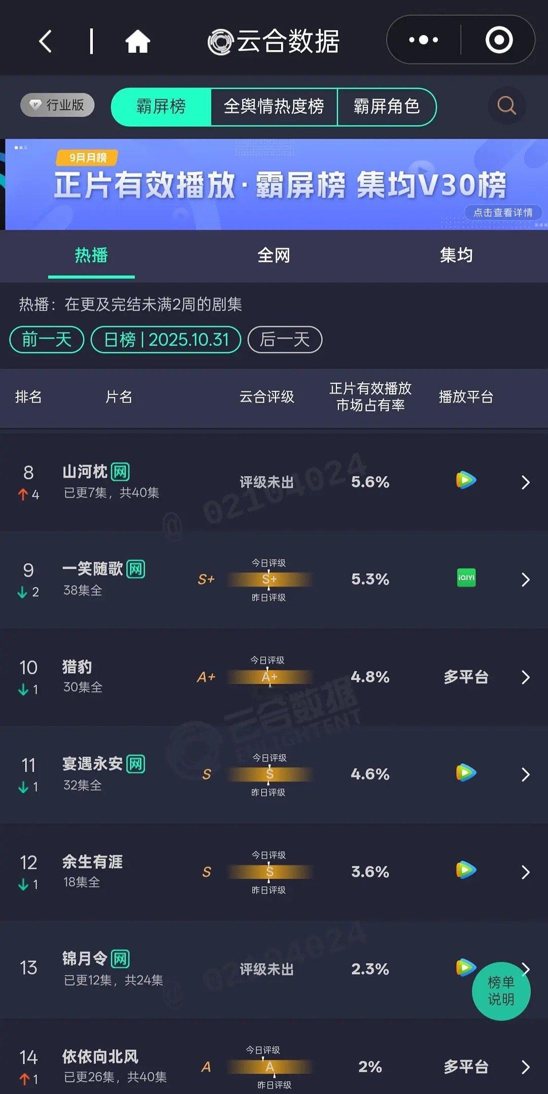 昨日云合丁禹兮主演的山河枕差点就出现在第一页啦!