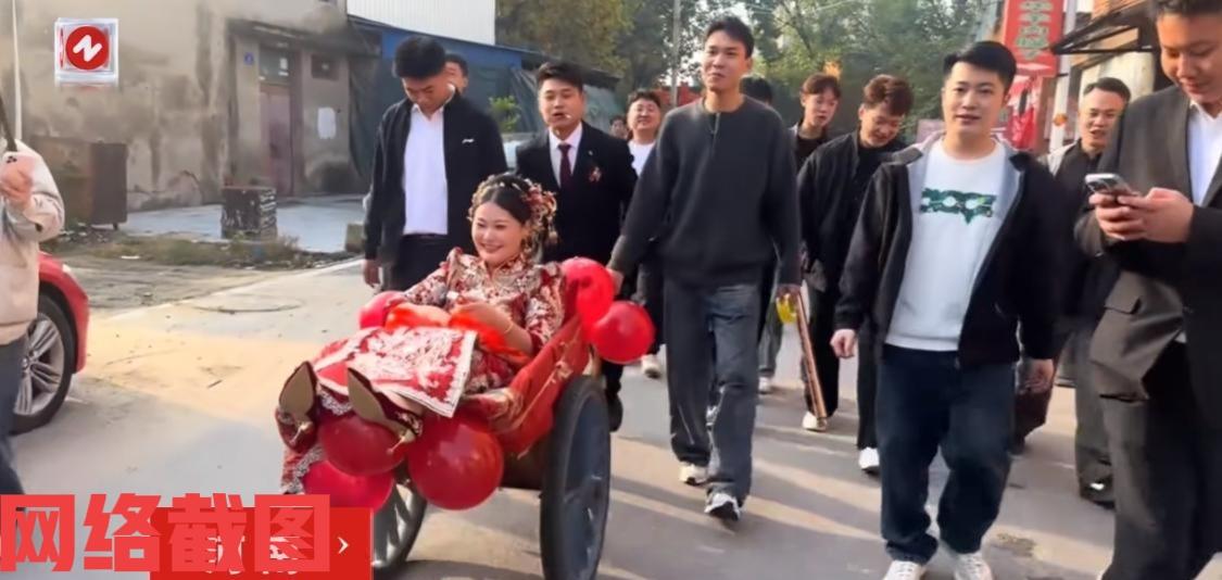河南邓州有新人结婚。 只是当日新郎来早了,这接亲仪式还需要等几个小时,结果新人也没有坐着干等,反而新郎用起了翻斗车拉着新娘出了门,并给周围的众人发喜糖。 新人此刻也没有觉得不体面,两人还是很开心,新娘坐在铺垫红布的翻斗车当中新郎推着走,还有人放着歌,把整个村子轰轰烈烈起来,这样的活动让婚礼的感觉也算有特别的味道,喜庆的气氛更为浓郁热烈。 这里没有讲排场,也没有设定所谓的仪式感,只是觉得快乐高兴就行,虽说这是人生的大事,却让平常的日子在简单的举止里有了欣喜。 如此和谐的举动里,看到她们未来生活的幸福,以不计较生活的得失,进行着生活里的想法,哪怕简单一点也不会有埋怨,在自己选择的快乐里感受着未来生活该有的幸福。 这对新人以后的日子,也会在岁月的相濡以沫中有幸福度过。