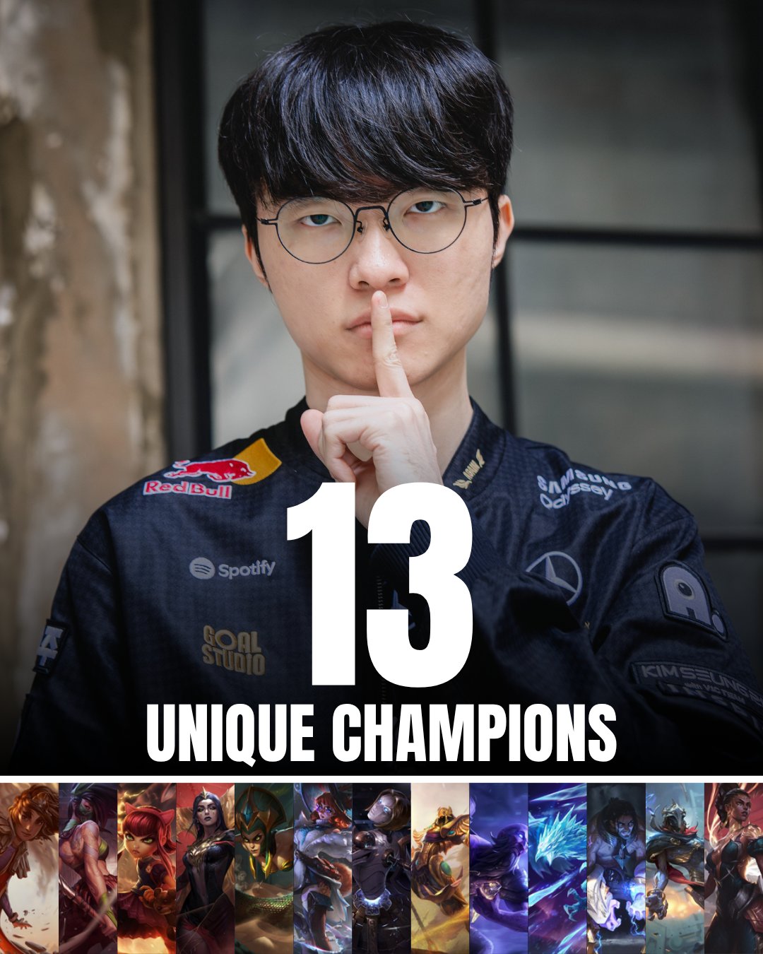 虎扑11月01日讯今日外媒统计Faker已经成为在S15中使用不同英雄数量最多的选手,在16局比赛中使用了13个不同英雄,FakerS15使用英雄如下: