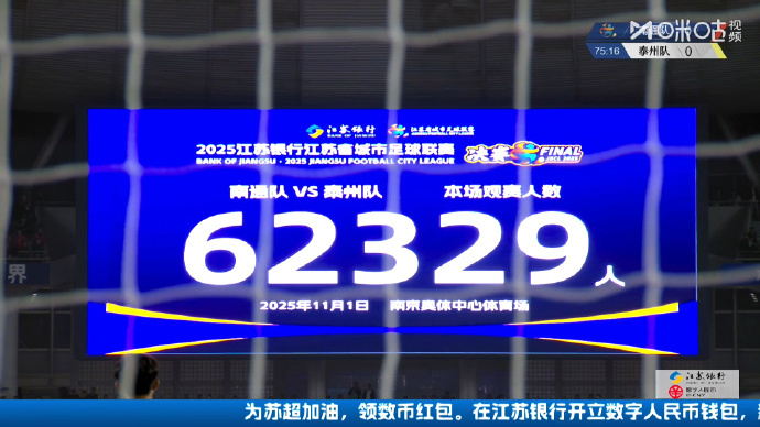 苏超决赛正在进行中,对阵双方为南通队与泰州队,CCTV5全程直播比赛,从实时数据可以看到,这场吸引全民目光的焦点战直播收视率已经破1。