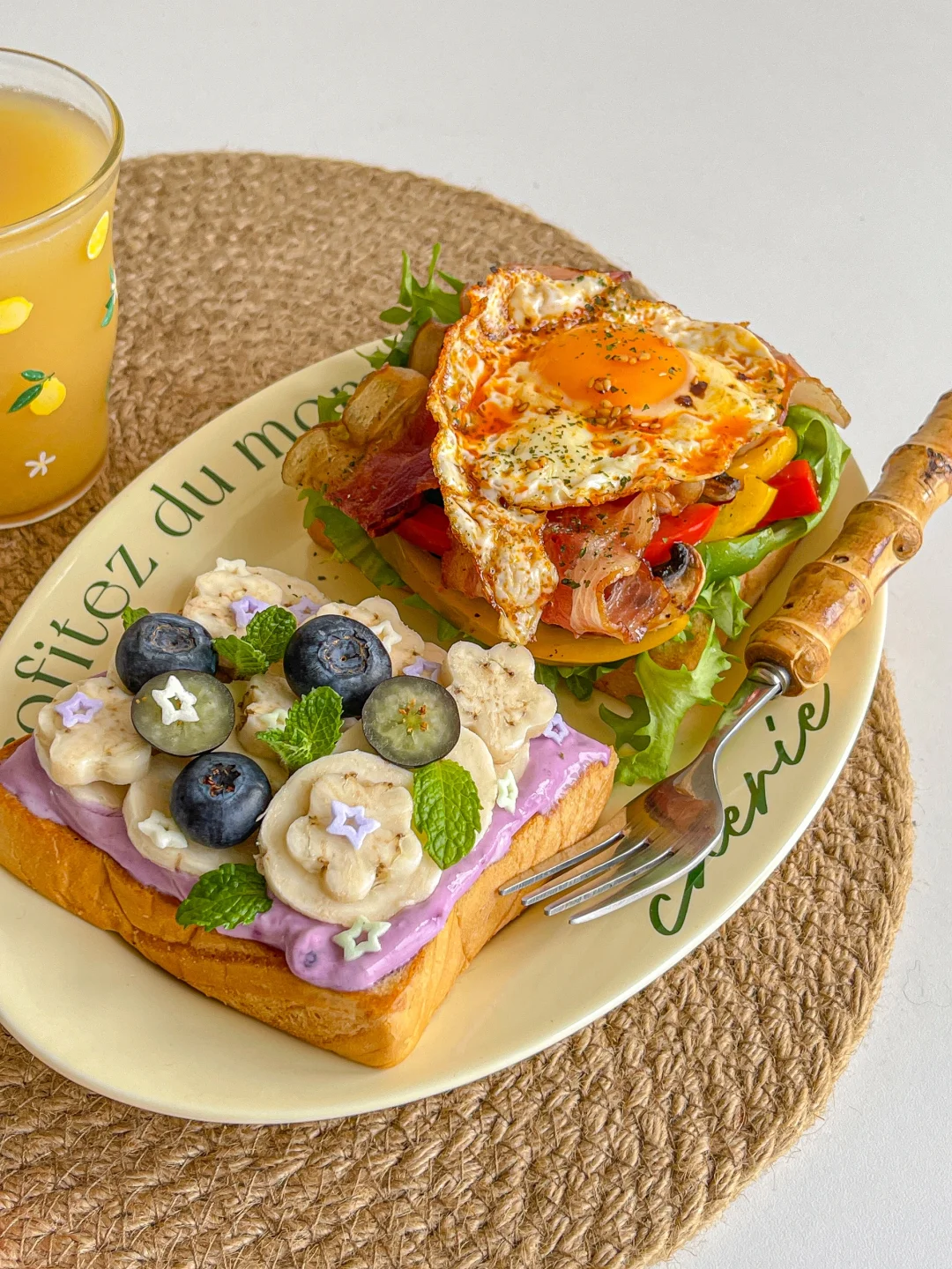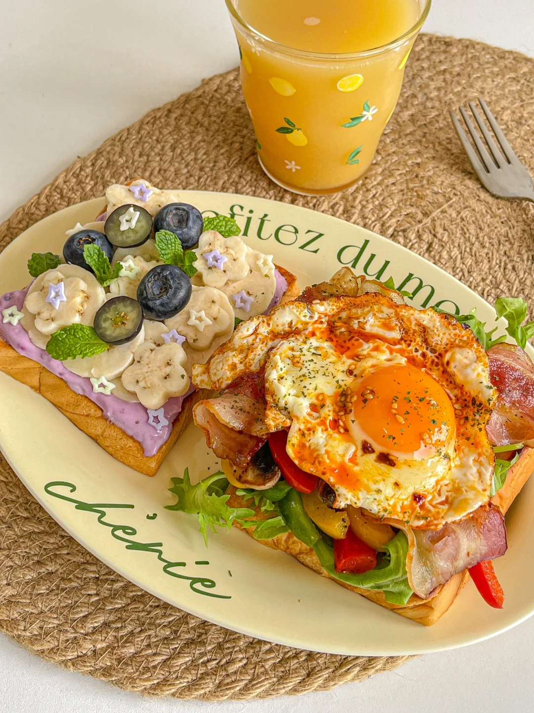 元气brunch🍳吐司三明治咸甜双拼🥪苹果汁🧃