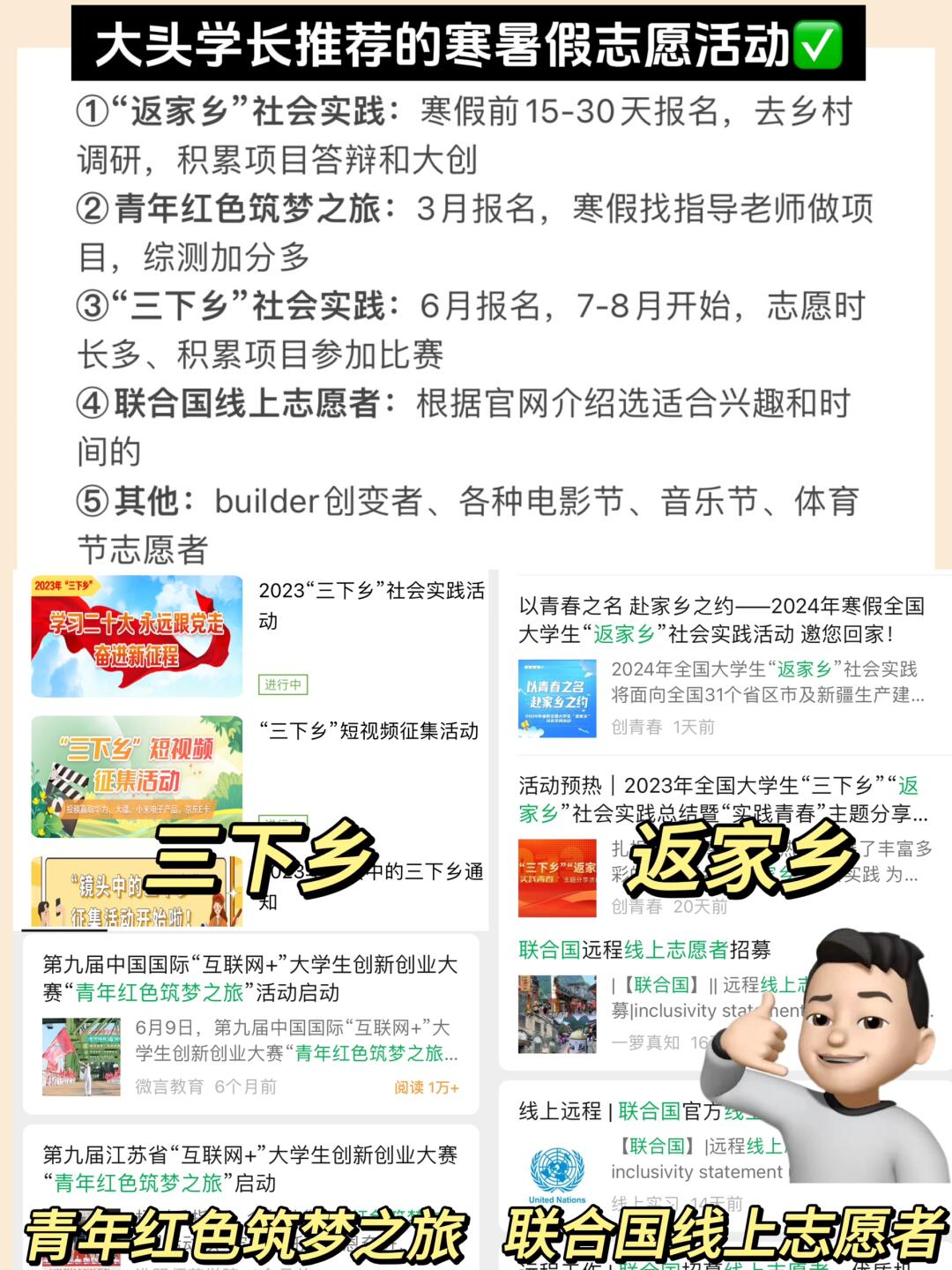 ①“返家乡”社会实践:寒假前15-30天报名,去乡村调研,积累项目答辩和大创