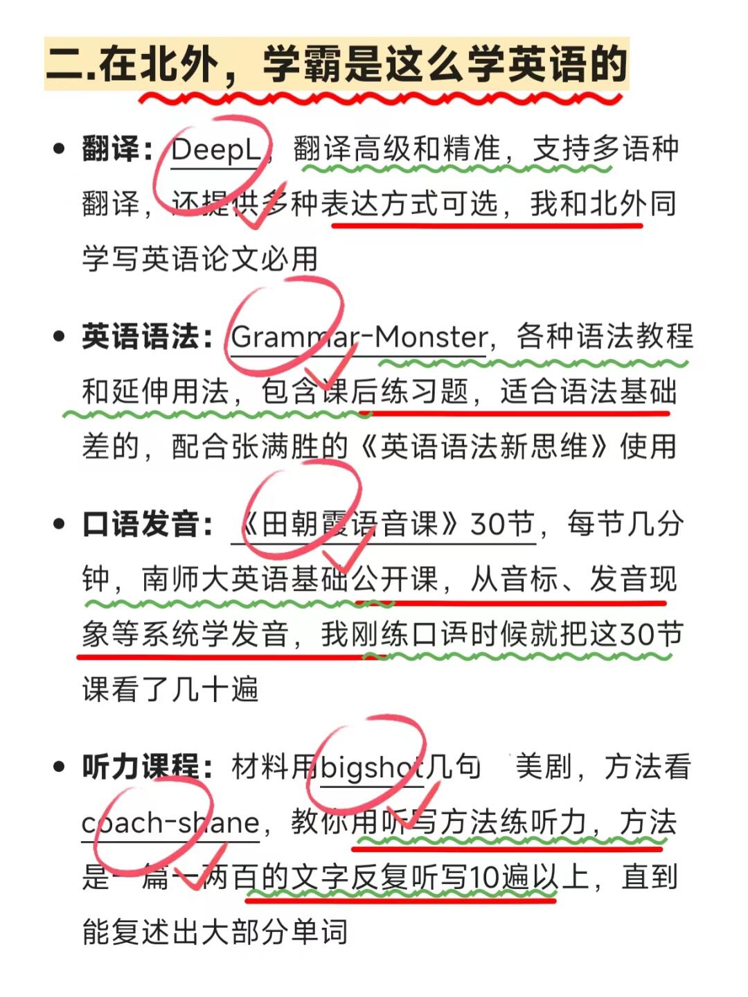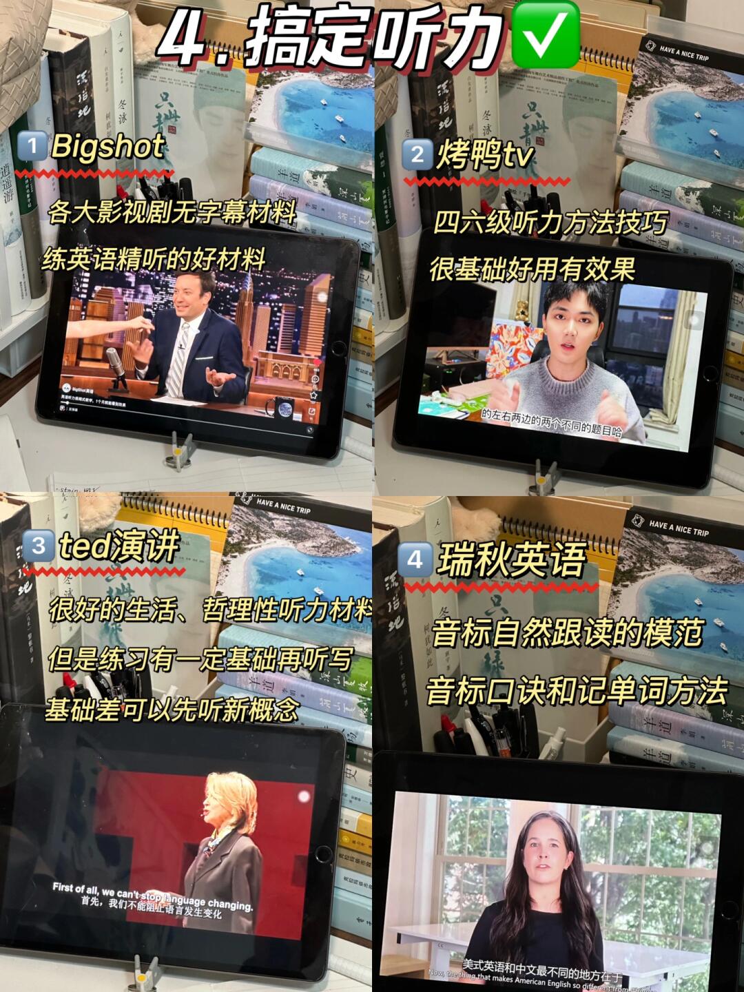 ▪️听力口语相辅相成,先提高听力再学说,很多人学很多知识但是哑巴英语,苦于口语怎么提升,我这几年小妙招是:在同学中寻找英语“搭子”,根据日常情景模拟和同学一起流利说英语 ,从本质提高听力口语