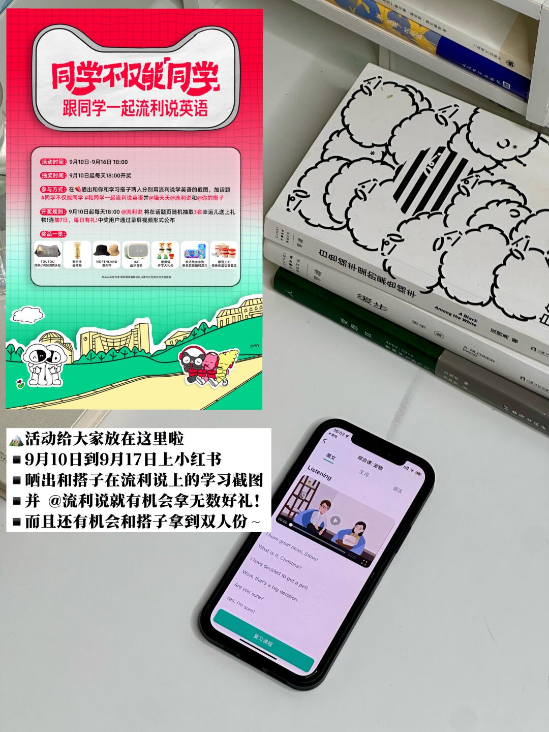 ▪️参加方式:9月10日到9月16日 在晒出和搭子在流利说学习截图,官方每日抽奖,督促学英语还有机会能拿到无数丰富奖品,还是双人份~