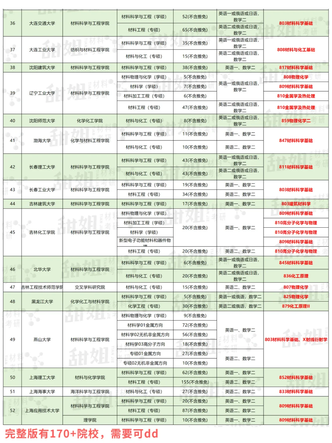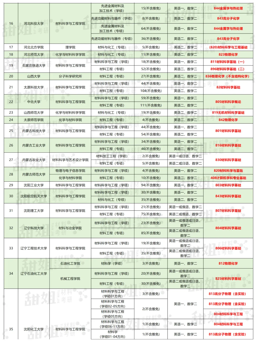 双非院校的数量比较多,我尽可能把所有设有材料硕士点的院校囊括了,虽然专业课都叫“材料科学基础”,但是考察内容不同,这部分需要同学们结合院校给出的参考书目和考试大纲来看~